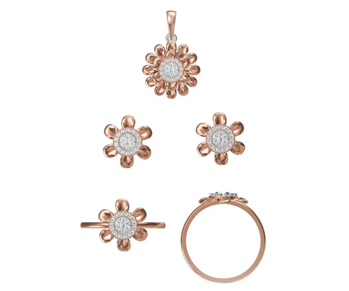 Home Catalog Light Minimalist Diamond Ring Earrings Pendant Set 3D print model