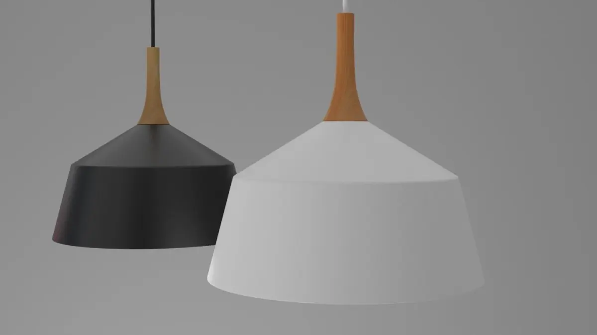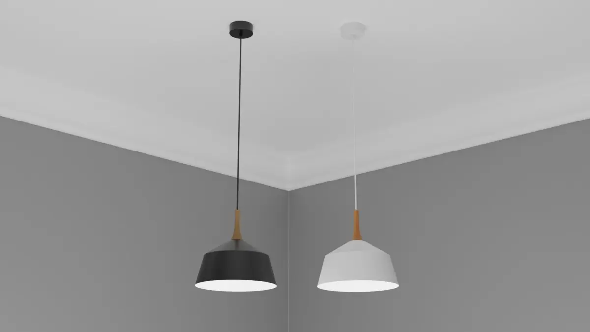 This pendant light is ideal for any Arch-Viz or game engine. It has a black matt finish with white material on the inside. Wood trimming at the top of the dome.It has one material for the light with non-overlapping UVs. Included is the bulb and bulb fitting. The Blender file has been packed and contains the materials and textures ready to use out of the box. It is modelled to scale: 1700mm X 420mm X 420mm Ceiling fitted with electrical wire. This model is based on a real model and will fit in any modern style setting.The origin point is place at the base where the light is fitted to the ceiling.