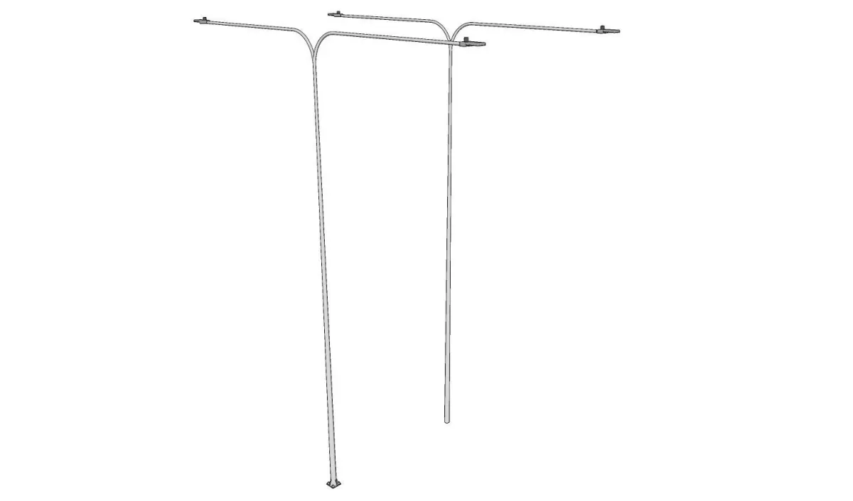 2nd Generation of 3D Lamppost Models. This model is metallic and is 8 meters high. Model available with flange for fixing to the surface and model available for grounding in the ground, without flange.