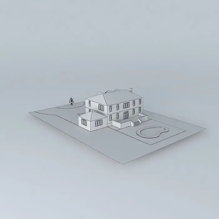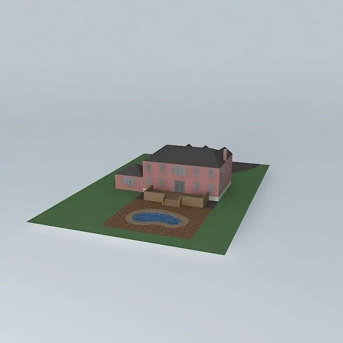 This 3D model was originally created with Sketchup 6 and then converted to all other 3D formats. Native format is .skp 3dsmax scene is 3ds Max 2016 version, rendered with Vray 3.00 Beautiful brick mansion with a pool, 2 car garage, a circular driveway, and patio in rear