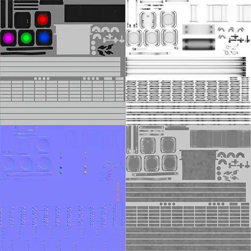 Albedo, Roughness, Metallic, Normal map, AO, Emissive