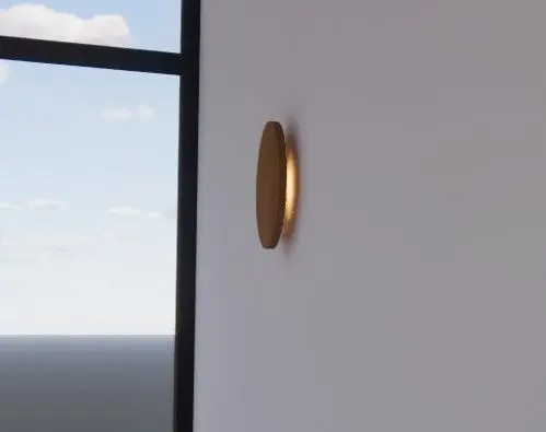 Revit Native. with light source behind disk for subtle glow on wall.material for disk is changeable by instance. height adjustable. 250dia circle size.