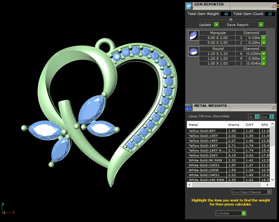 light weight yellow gold diamond pendent -DOC-P8081 3D print model