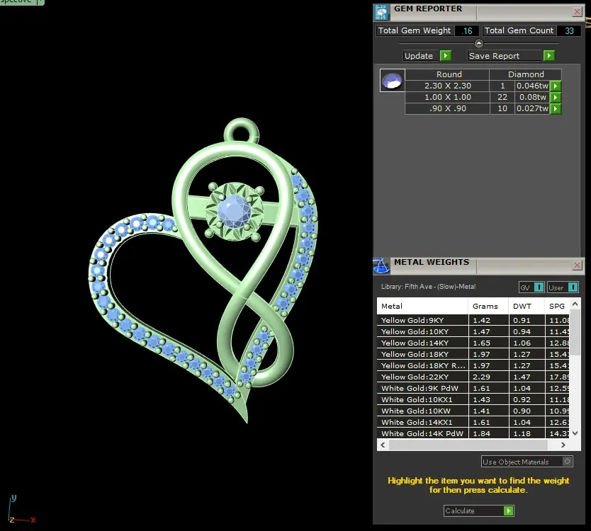 light weight yellow gold diamond pendent -DOC-P8083 3D print model