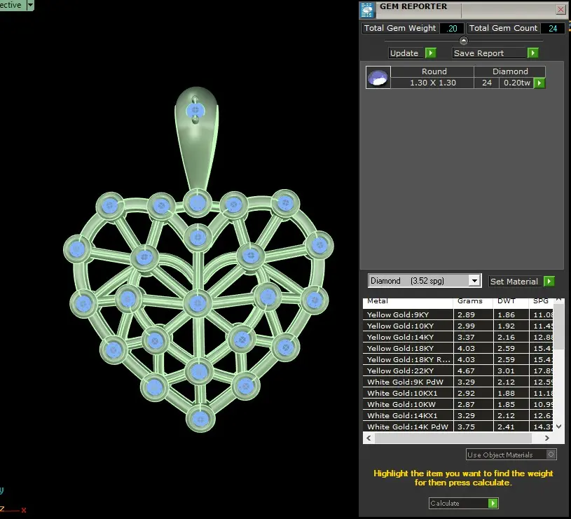 light weight yellow gold diamond pendent -DOC-P8219 3D print model