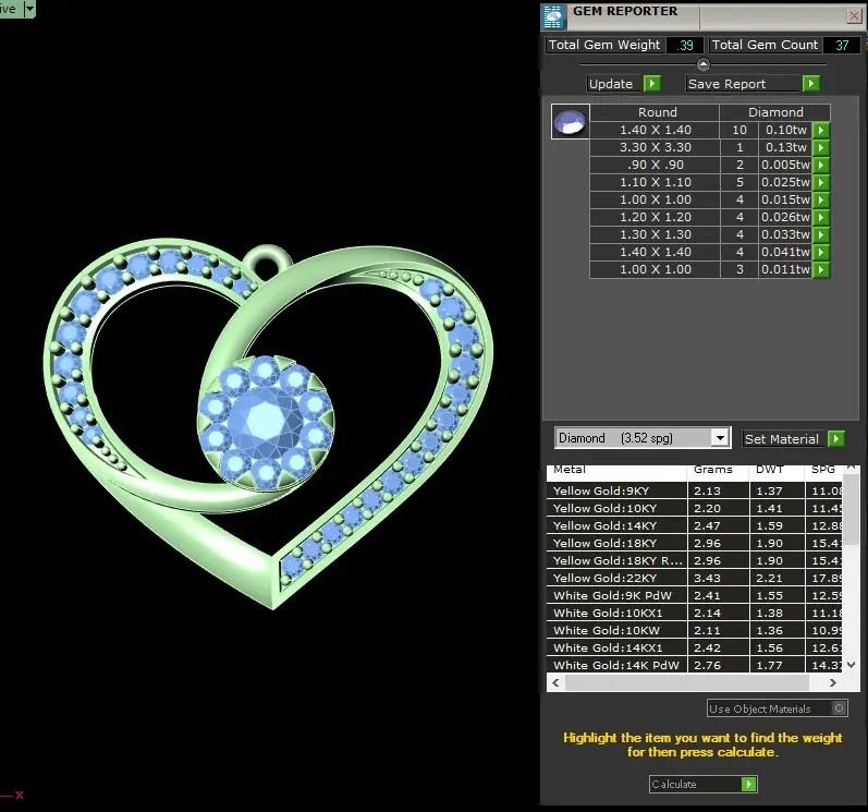 light weight yellow gold diamond pendent -DOC-P8220 3D print model