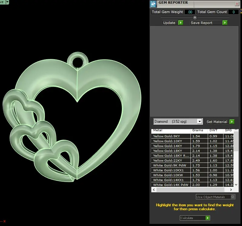 light weight yellow gold diamond pendent -DOC-P8233 3D print model