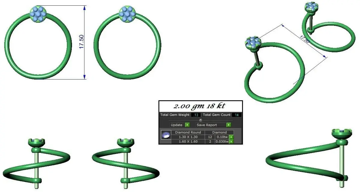 Light wt Women Diamond Earrings renders 3dm stl and details
