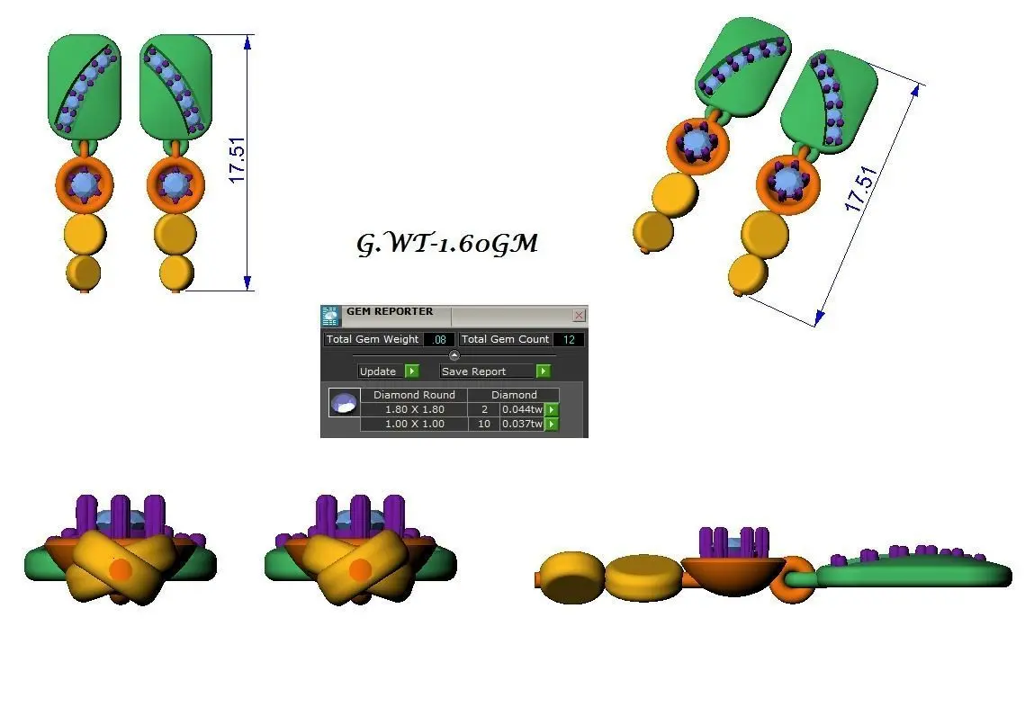 Light wt Women Diamond Earrings renders 3dm stl and details