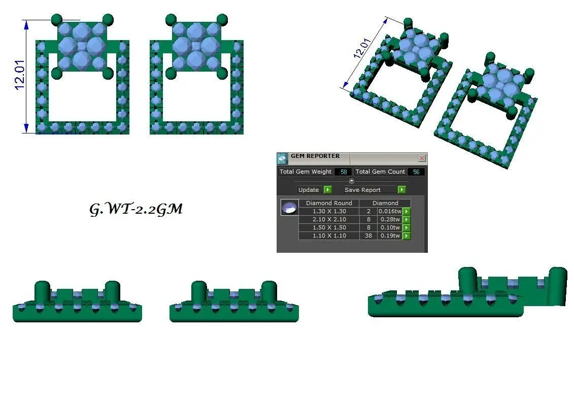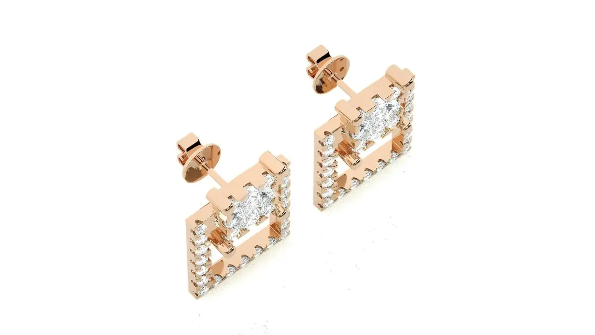 Light wt Women Diamond Earrings renders 3dm stl and details