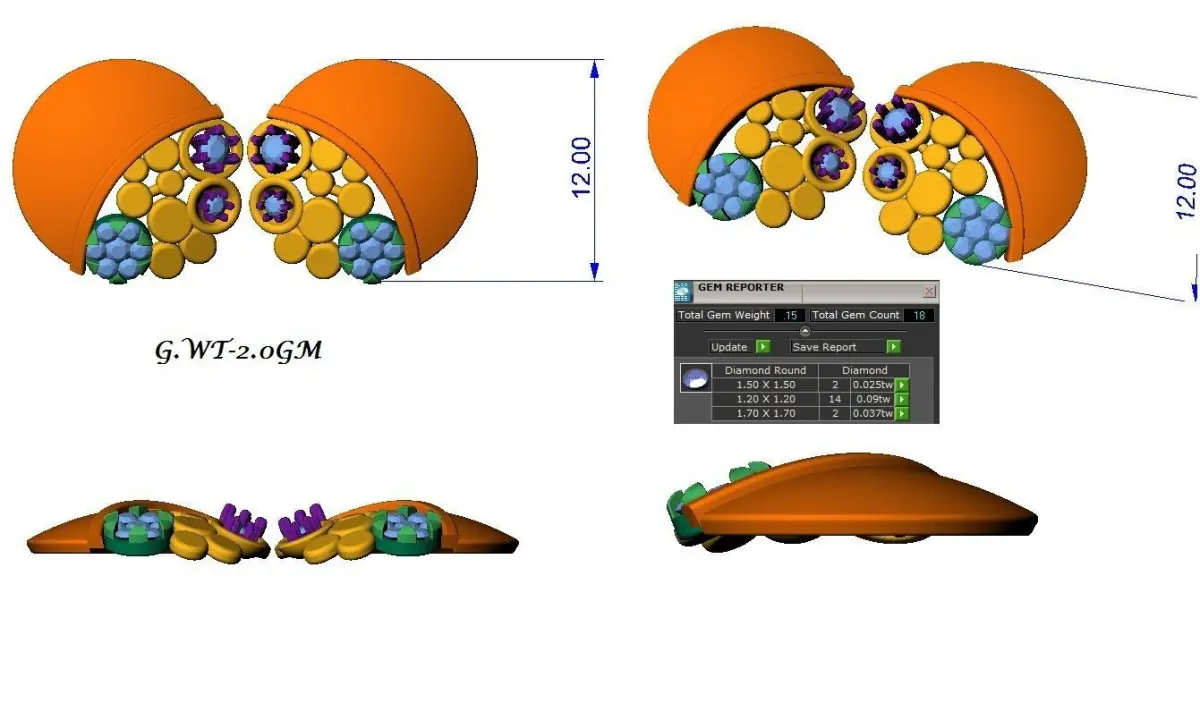 Light wt Women Diamond Earrings renders 3dm stl and details