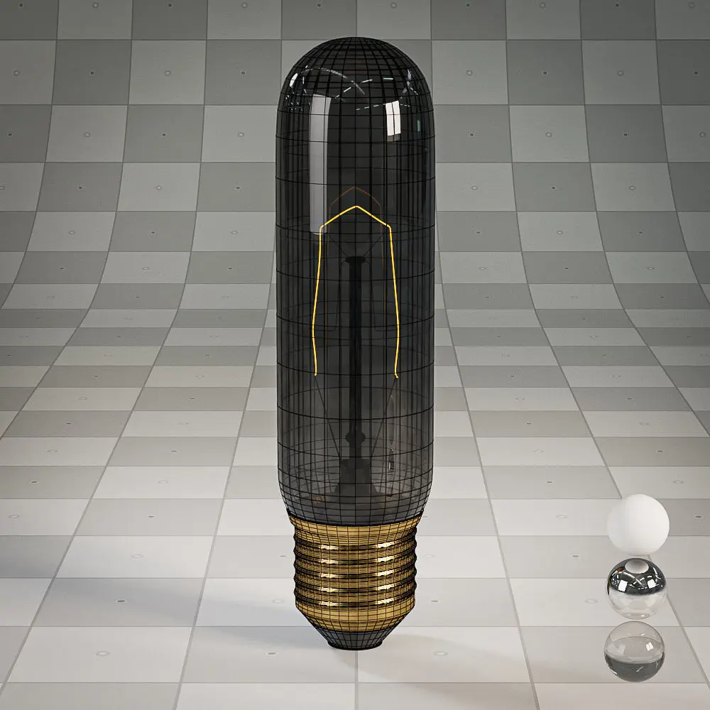 Thin tube T10 vintage-style Edison bulb with exposed filaments for use with specialized lighting such as string lights, fixtures, and smaller-format urban industrial lighting. Suitable for use in industrial, urban, rustic, farmhouse, or Mid Century Modern room scenes.