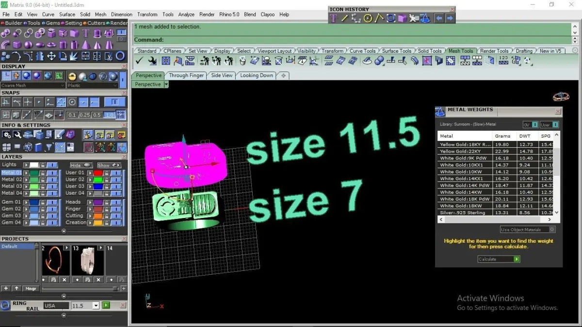 Lighter rings are available in sizes 7 and 11.5, which can be cast in gold or silver. You can also change the size in Rhino or Matrix software - print and cast and enjoy. (3dm-stl-obg-fbx)