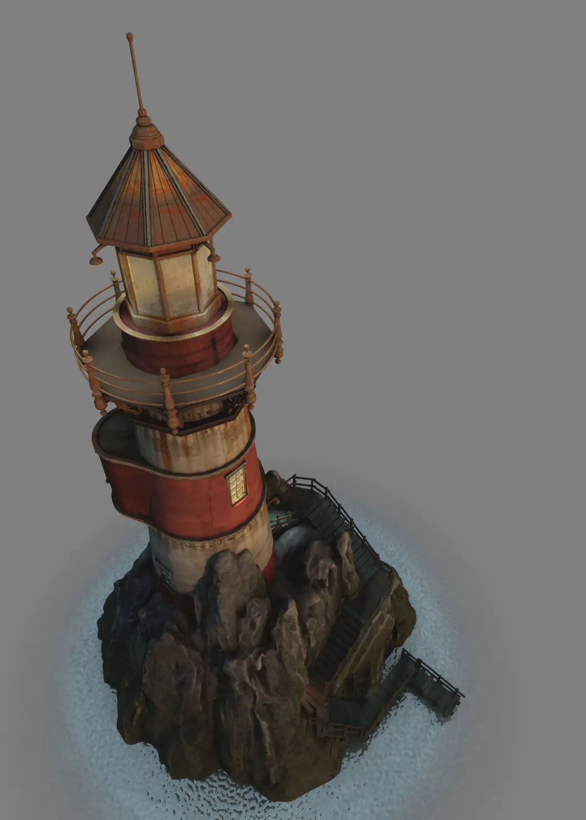 Realistic and somewhat stylized victorian lighthouse, with rock base and stairs. Shaders have diffuse, normal and glossiness or roughness map. Lighthouse wall textures were created in Photoshop, and besides that, everything else is PBR. Model is fully operational both in 3Ds Max where it was created, and in Blender as well.