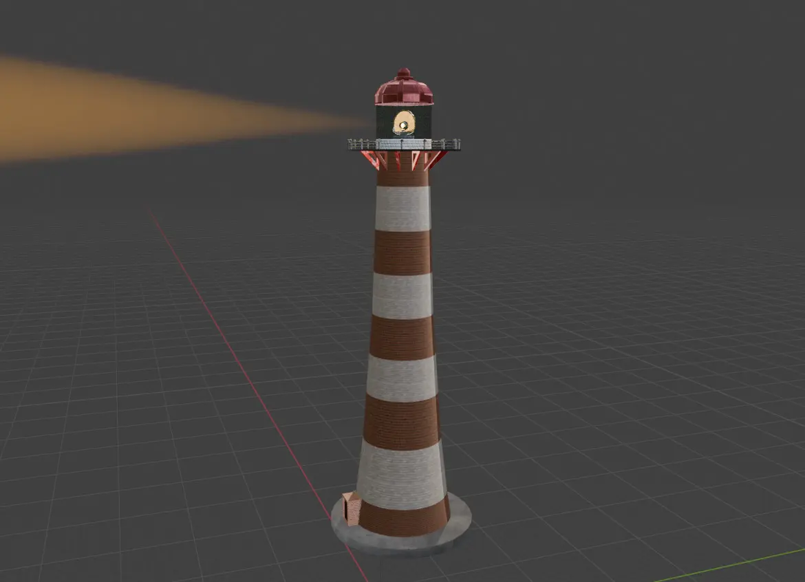 This is a beginner work, 3D lighthouse model created in Blender. The model includes a lighting on the top to simulate a working beacon, making it suitable for use in games, animations, or environment design. But it has no interior.
