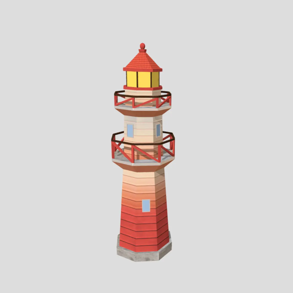 3D model of a Lighthouse. The model is low-poly; has one material, PBR textures 1024x1024 (base color, metalness, roughness, normal).