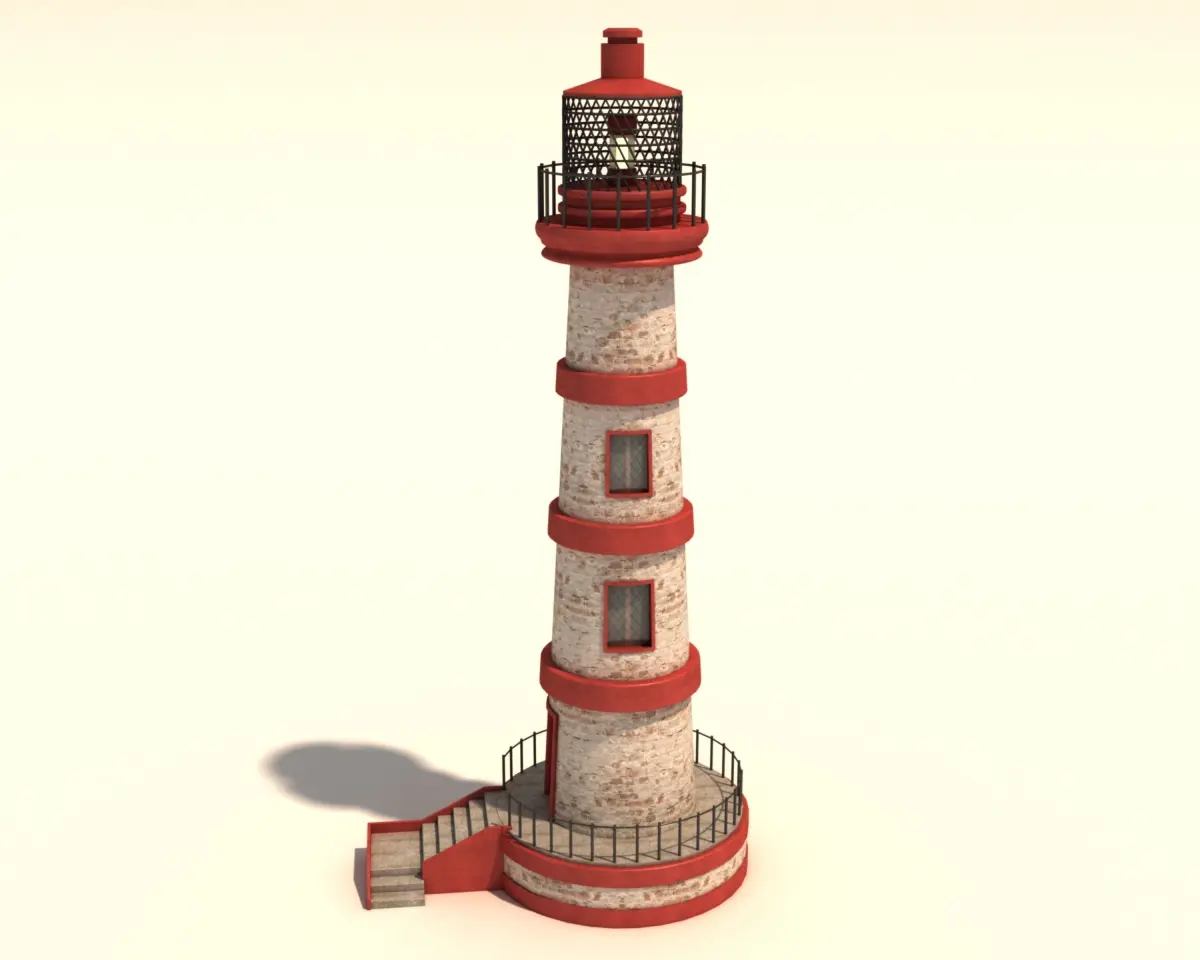 Classical style, white brick and red combination designed lighthouse model.Only 9866 polygons used, so it can be count as Low Poly. You can use it in your games etc.