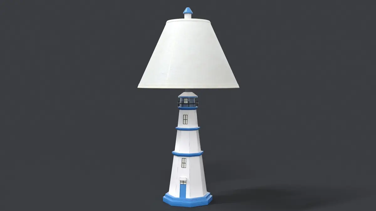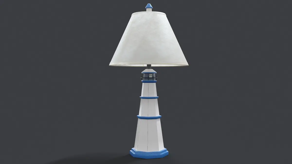 This tall table lamp is shaped like the legendary East Coast lighthouse in antique white with a fabric shade.Decorated classic lamp made in the image of a lighthouse,The whole model was made in 3ds max, painted in Substance painter.Quads and trianglesAll models, textures and materials have the same name.PBR textures.Diffuse glossinessReflectionHeightIORMetallicNormaland opacity maps for Glass.