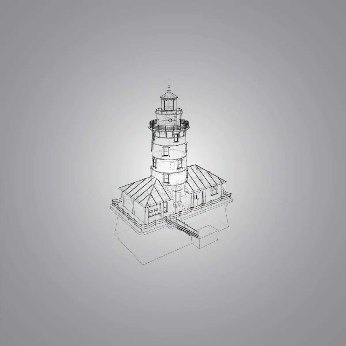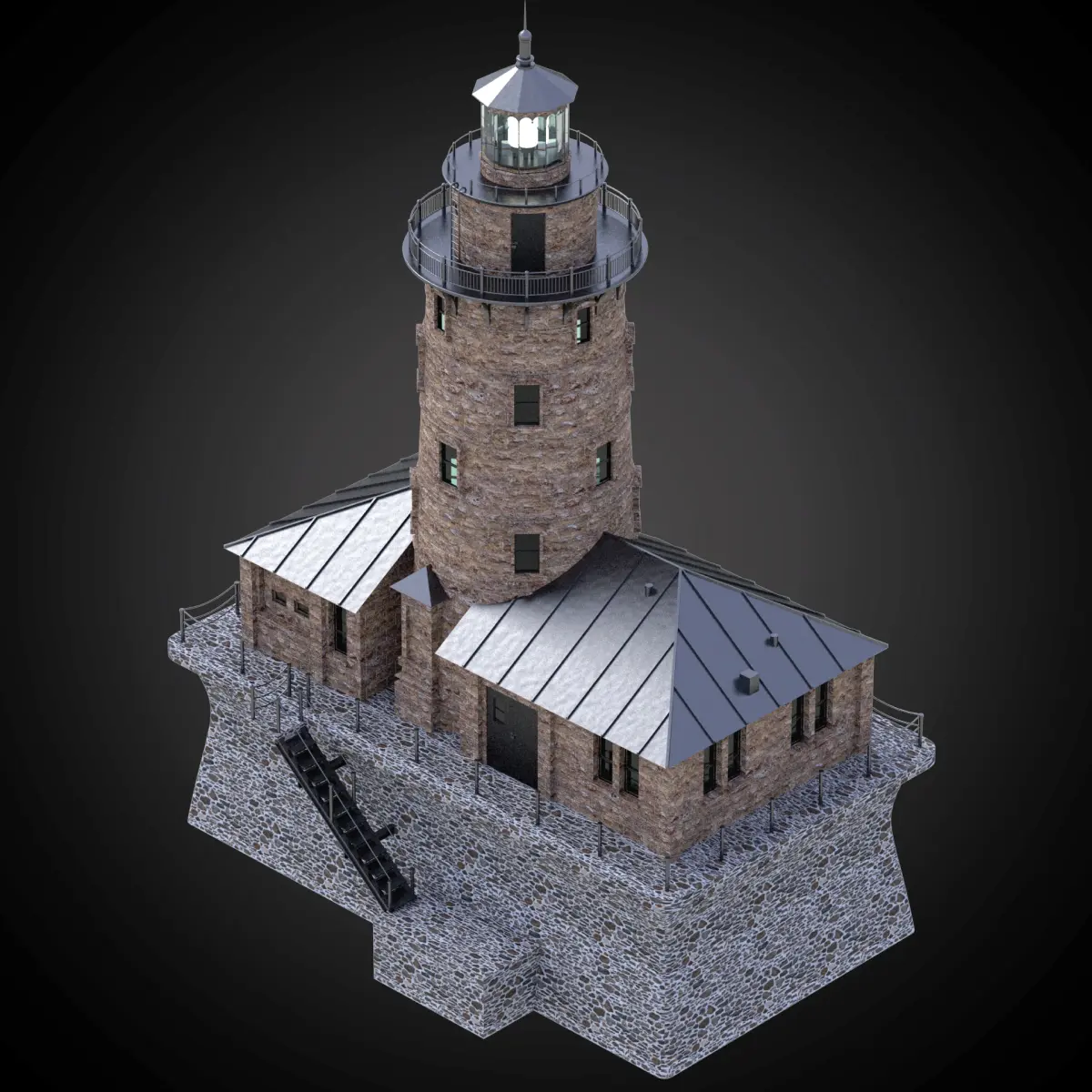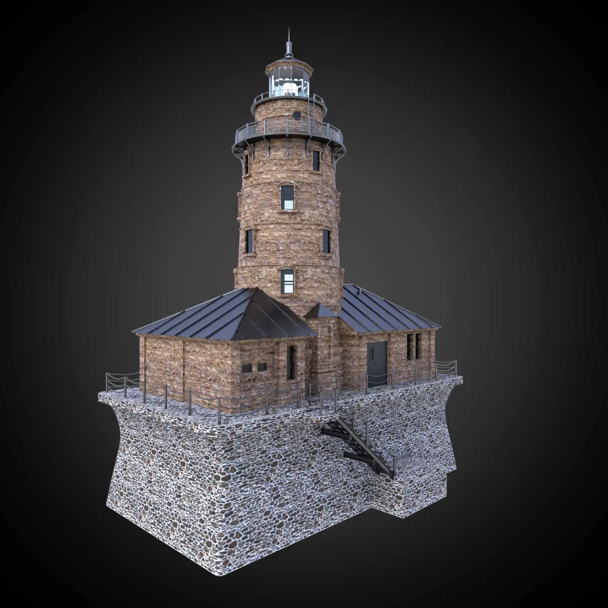 Lighthouse with building architecture and engineering structure Low-poly 3D model