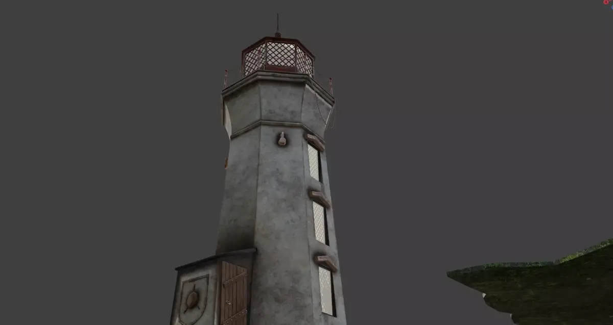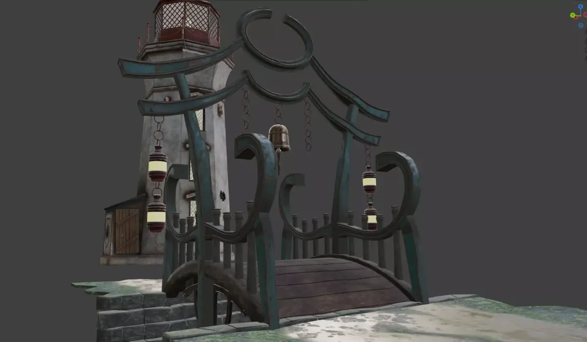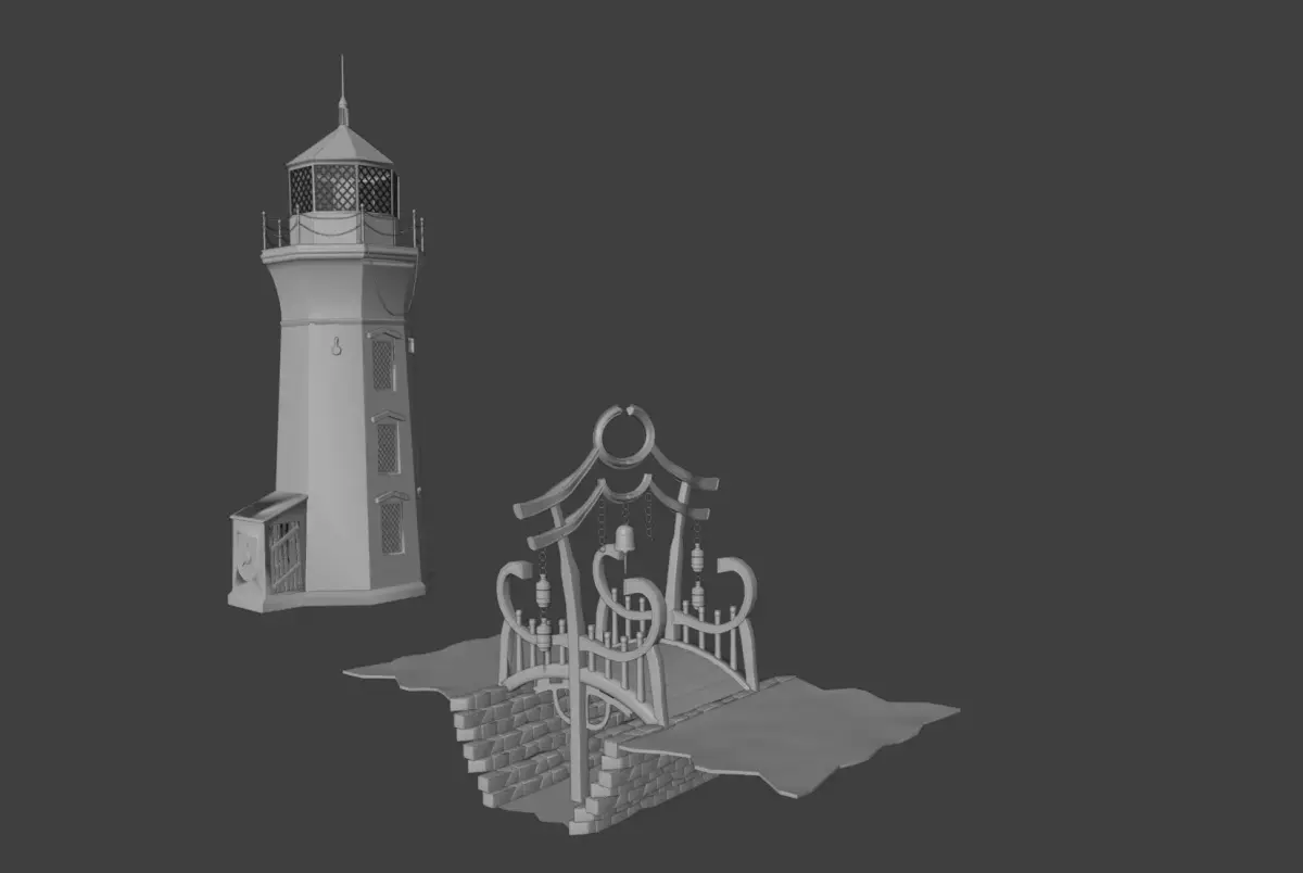 Lighthouse with oriental bridge for print, game.