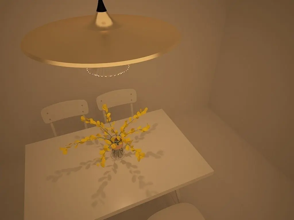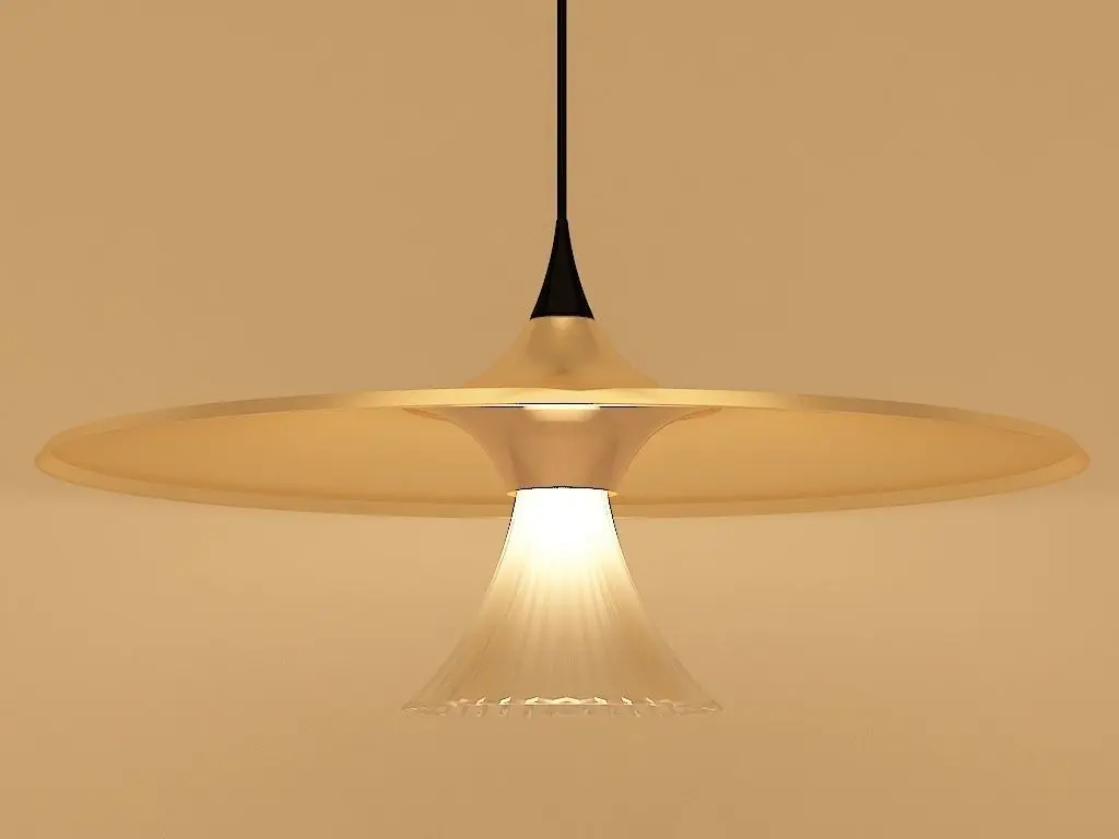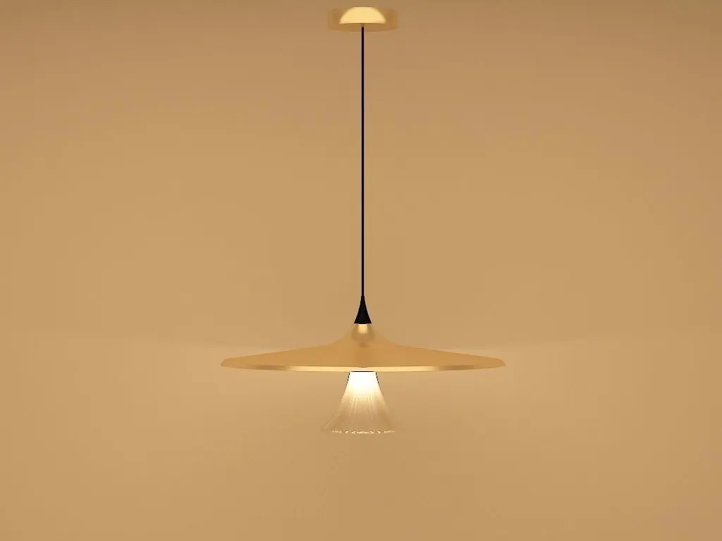 golden pendant in gold leaf finish & polycarbonate diffuser for dining tables or home kitchen table, gives a warm feeling to the area, material could be changed to copper or black metal depending on the furniture you have in your scene.