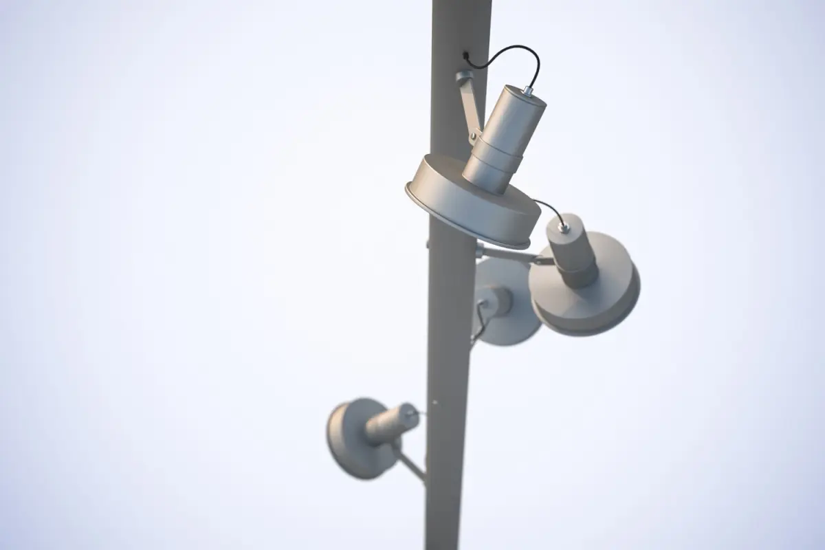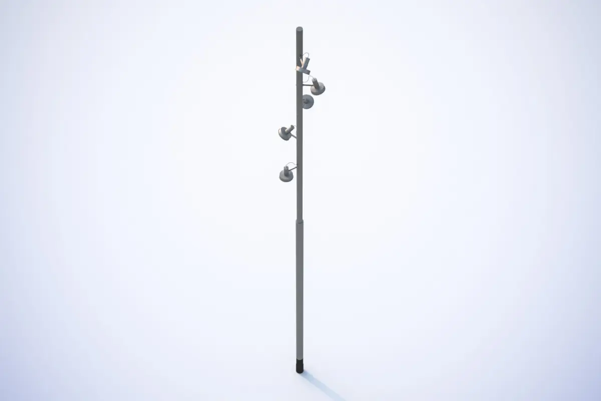 This 3d model includes lighting pole with bulb holders in the upper part. Arranged symmetrically around the entire pole.