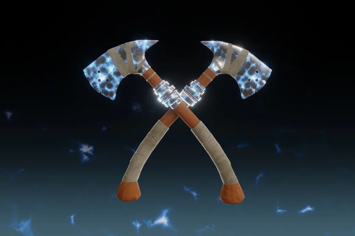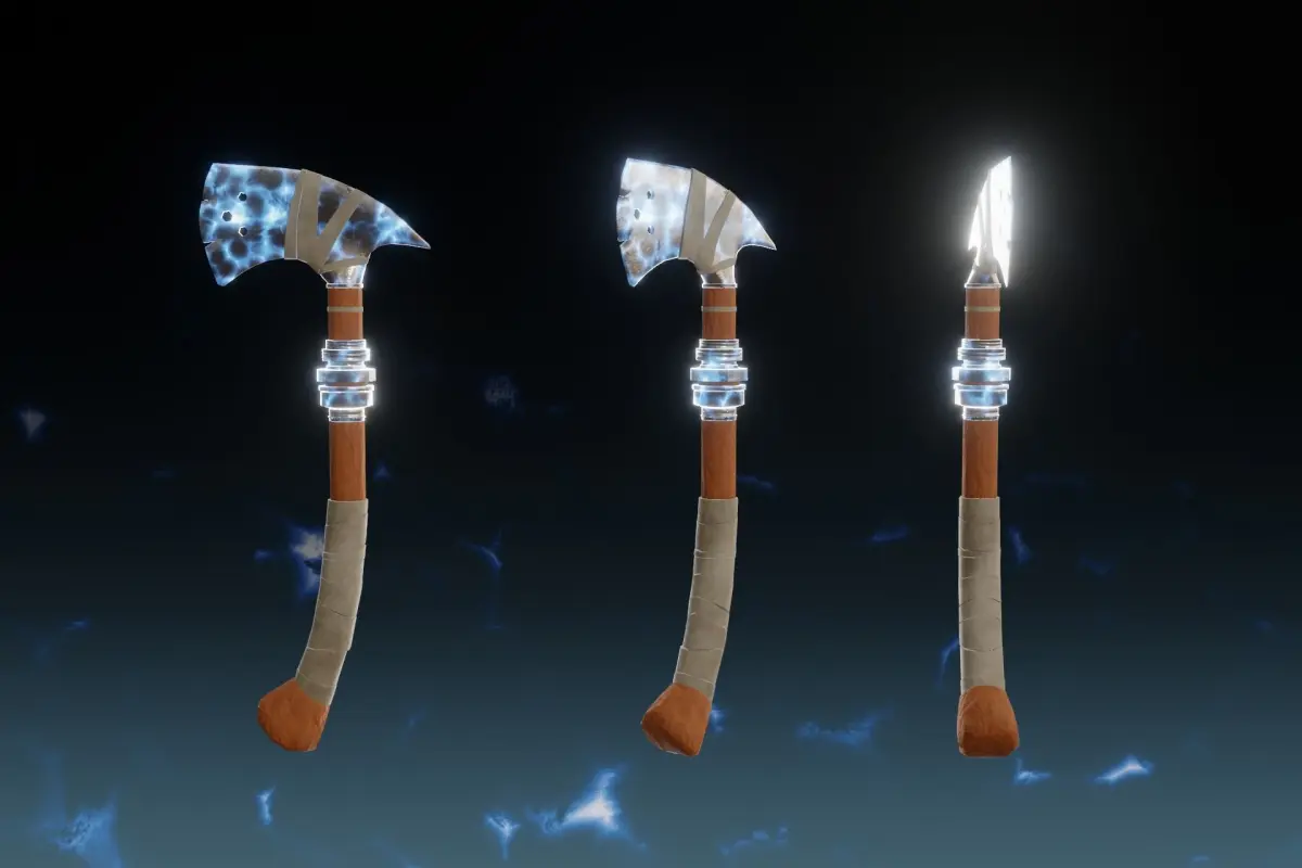 Low poly 3d model of fantasy lightning axe - Elemental axe, made in blender 2.93 with PBR textures in 2k and 4k