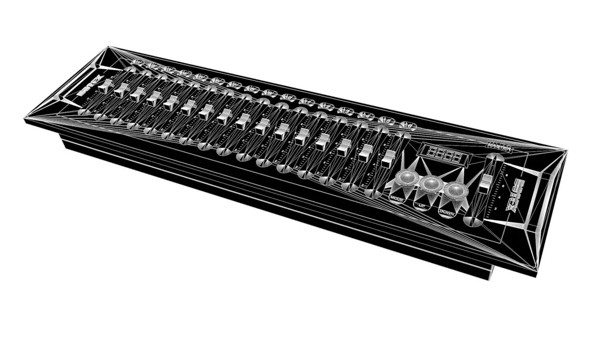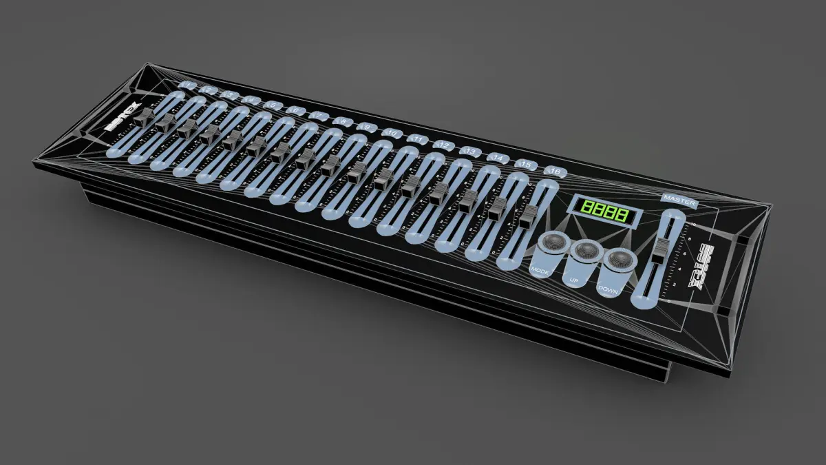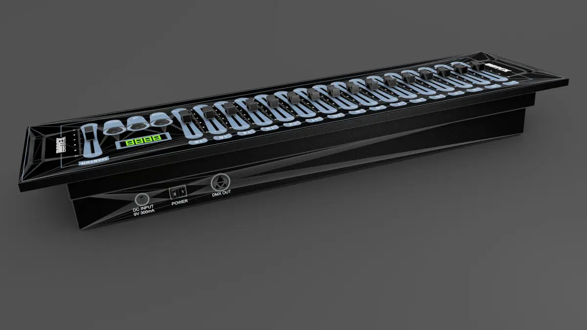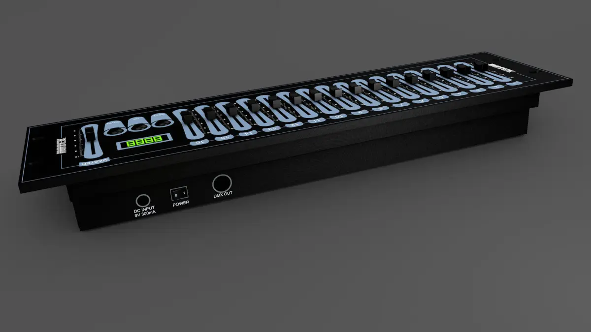 Lights mixing Console Botex DMX SDC-16. Each part and labels separated. .3DS .C4D .DXF .FBX .MTL .OBJ