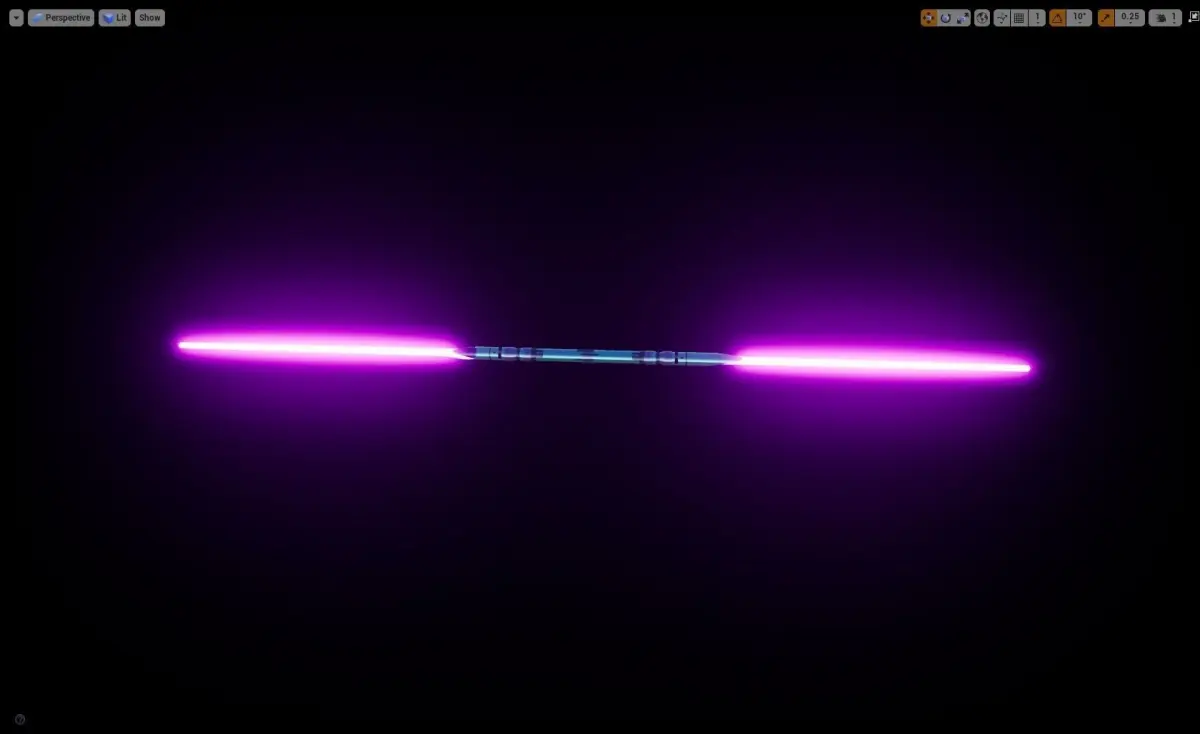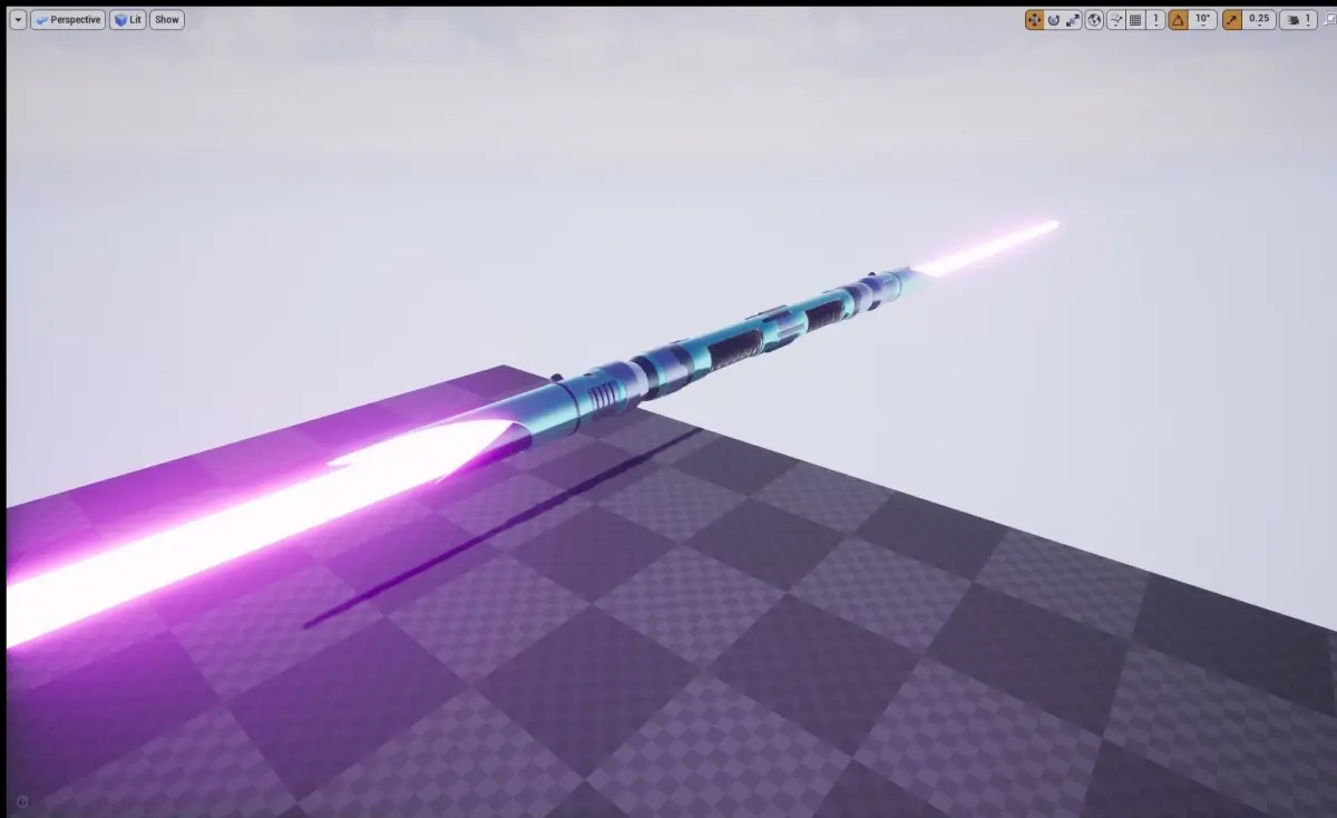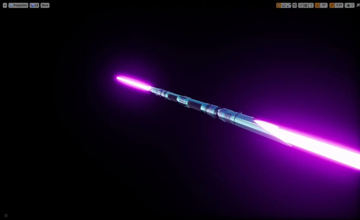Its a dual blade lightsaber. The blades and the hilt are in setpreat files. They are like this so you can use it in cinematics, and turn the saber on and off. there are no texters for the balds eather, but it is semply to make them. the blade texters are just a singel color that is put into the base color and the emissive, and you got your blade color.