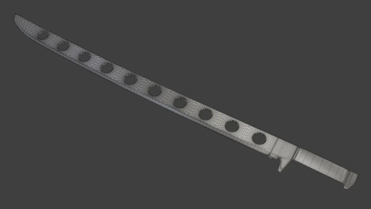 The sword is light with holes, the high-poly model is suitable for games and personal use, there is also a low-poly version on the page.Enjoy your use =)