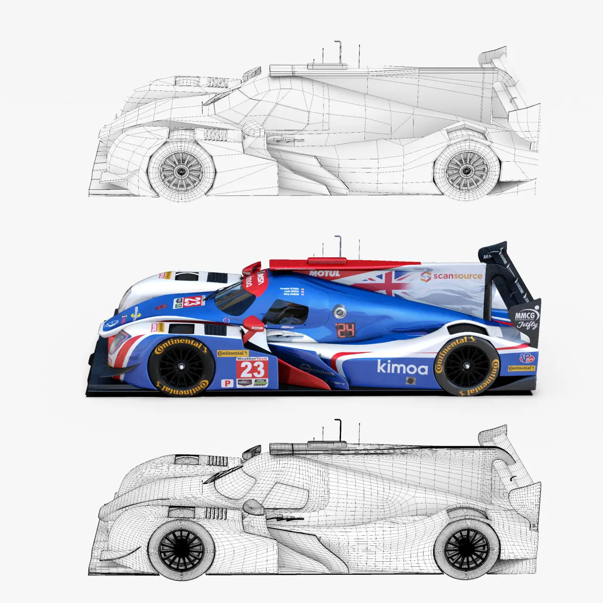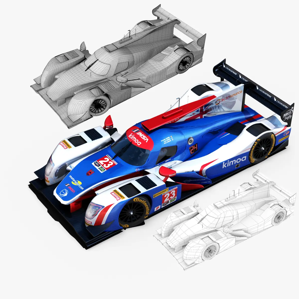 This is a 3D low poly model ,it was designed to provide a high definition in a low poly. Standard low-poly mesh with specific poly count. Rigged in the maya version. In this version joins, control curves, ik handle, blend shapes, different poses, driven key are included . In the other versions only include geometry ( one for each poses),6 poses , materials and textures. It`s the most accurate and realistic of the market. This is a recreation of a daytona 24 hours Car model,it can suffer modification over the season. Includes the 3 drivers.The model is completely ready for use visualization in maya. For low poly model simply press 1 and for the high resolution press 3. In Cinema4d go to function menu and subdivide. In 3dmax meshsmooth In the low poly: Poly count : 50697Vertex count : 53287In the smooth version: Poly count : 840812Vertex count : 850970Textures included. Each texture is in jpg format and have a 4K texture resolution for high quality It has color,displacement,normal,bump and specular texture Because of different Disk topology at different computers it might be required to change the textures path at the destination computer. The 3D model was created on real base. It's created accurately, in real units of measurement, qualitatively and maximally close to the original. Animation is not included. The files are obj, fbx,max, mb ,c4d and 3DS. In formats c4d, 3ds, obj ,max and fbx model exported to standard materials (textures), not contain mental ray shaders. files with the model does not contain extraneous or hidden objects (lights, cameras, etc.) Included rigging and constrains, blend shapes and driven keys only in the maya format. original file format maya render in linear sRGB Please feel free to contact us for any query or if you need further assistance, we will be happy to assist you.