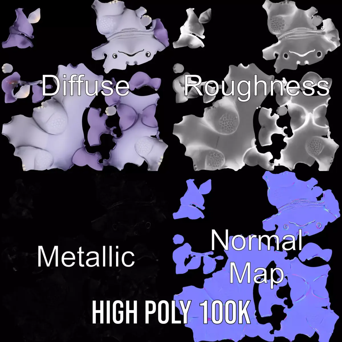 The model's textures are PBR, Diffuse, NormalMap, and reflection/roughness/metallic, which are suitable for any modern rendering engine. All models are accurately unwrapped and have no overlapping UVs.