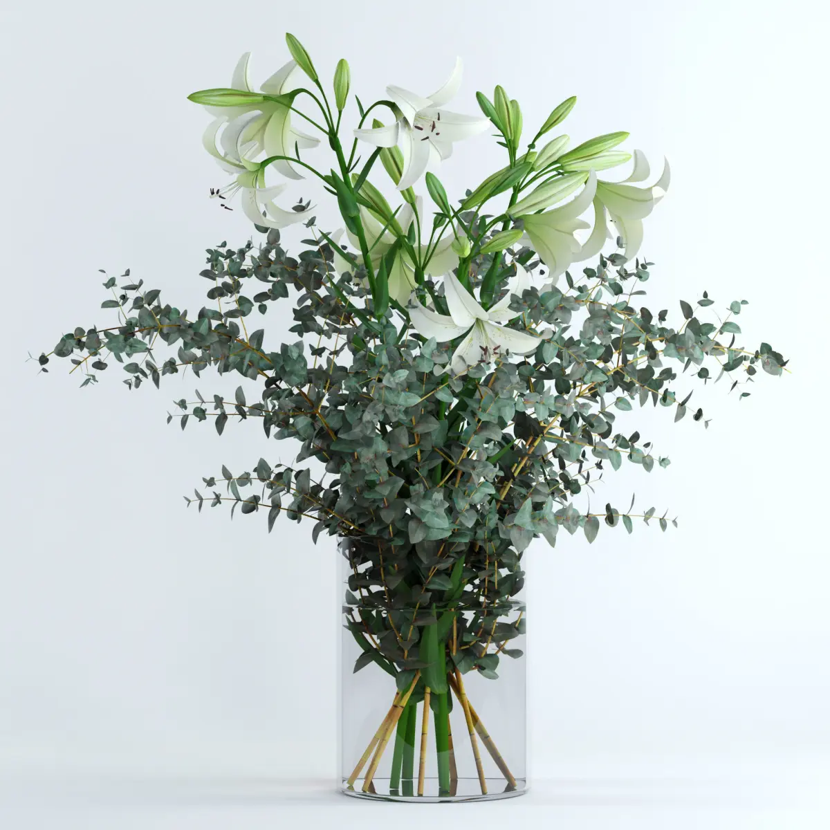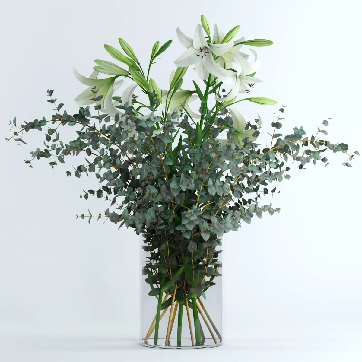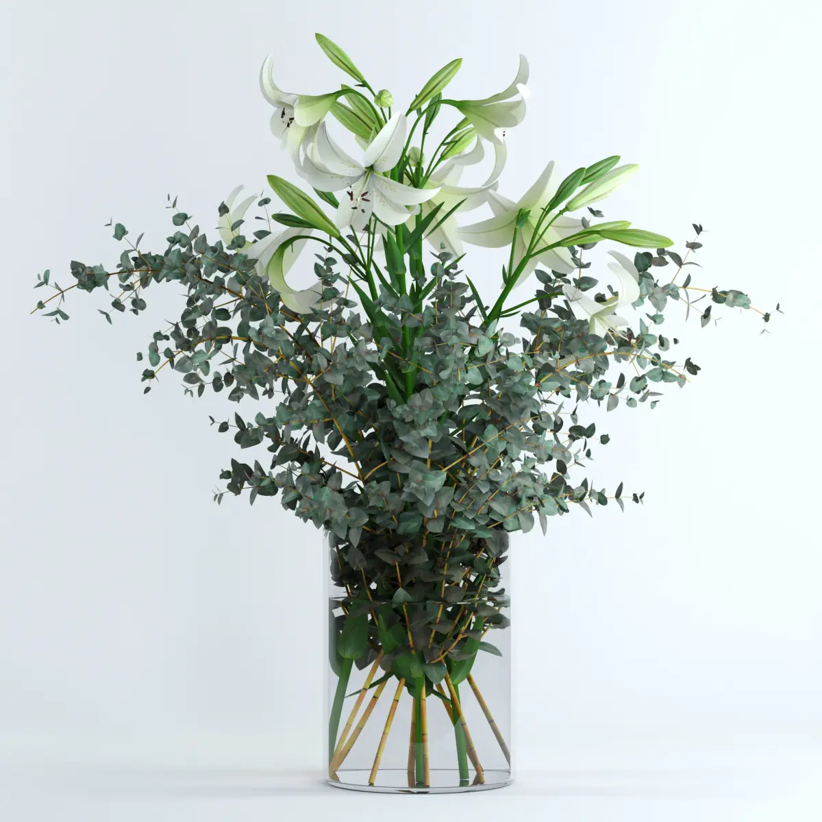 File includes very realistic flowers in glass vase. Native format is 3dsmax 2014. Lilies and vase&water are covered by Turbosmooth with 1 itterations.