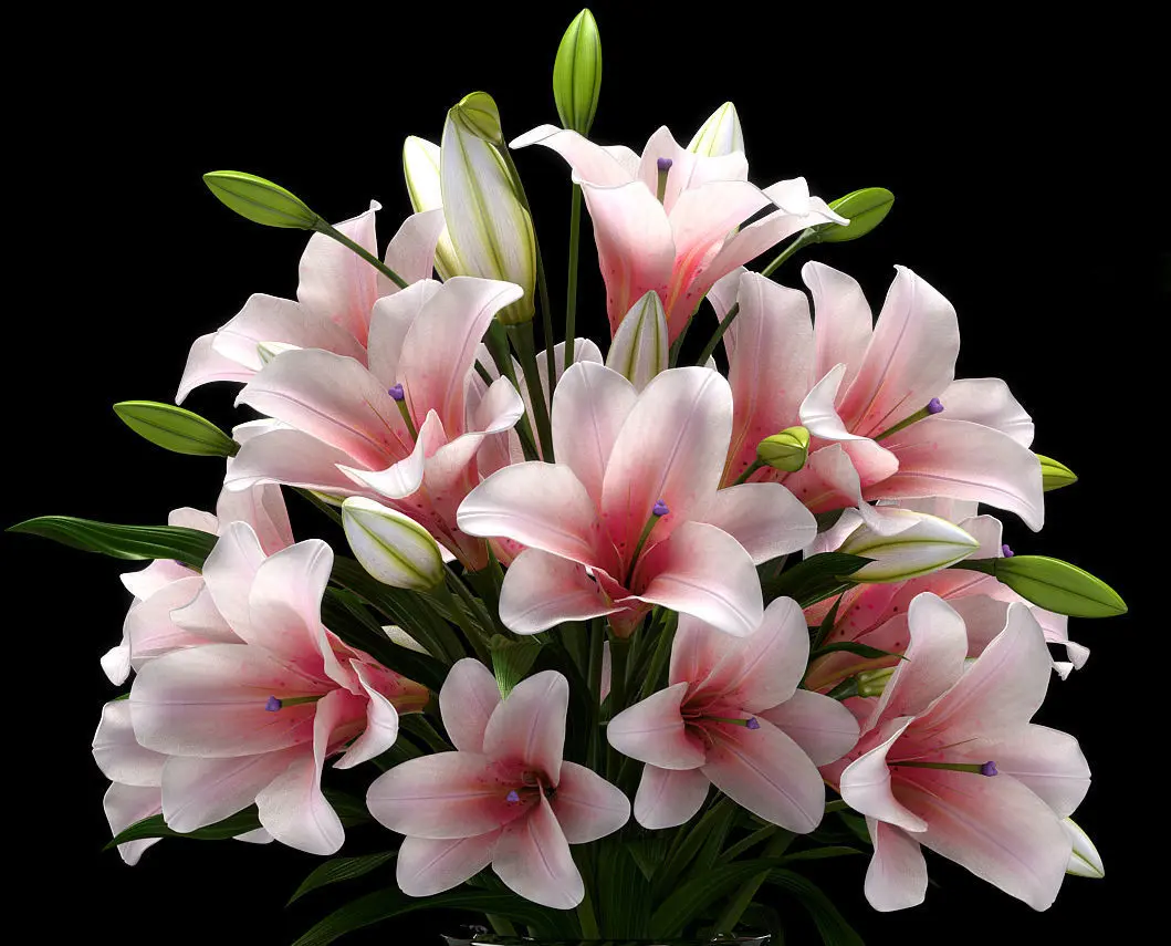 LILY 2 BUNCH OF LILIES OF WHITE AND PINK COMBINATION ARRANGED NICELY IN A GLASS VASE, LOOKS VERY NATURAL AND ELEGANT... SUITS BEST FOR YOUR INTERIORS.. DESIGNED IN 3DSMAX