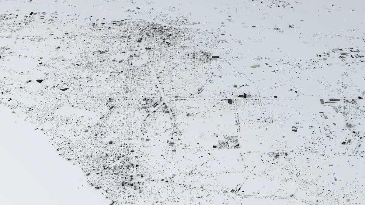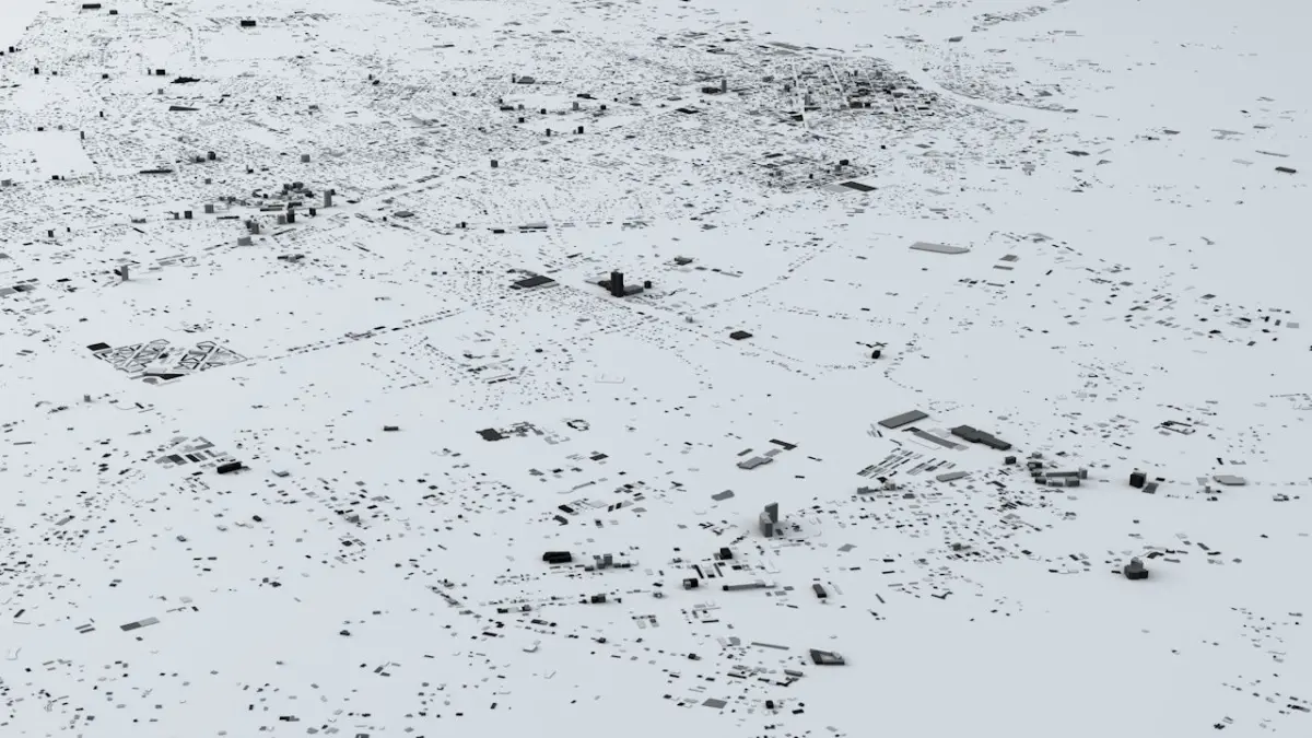 - the model is positioned on a flat surface (all buildings are on the “floor” - no elevation data included)