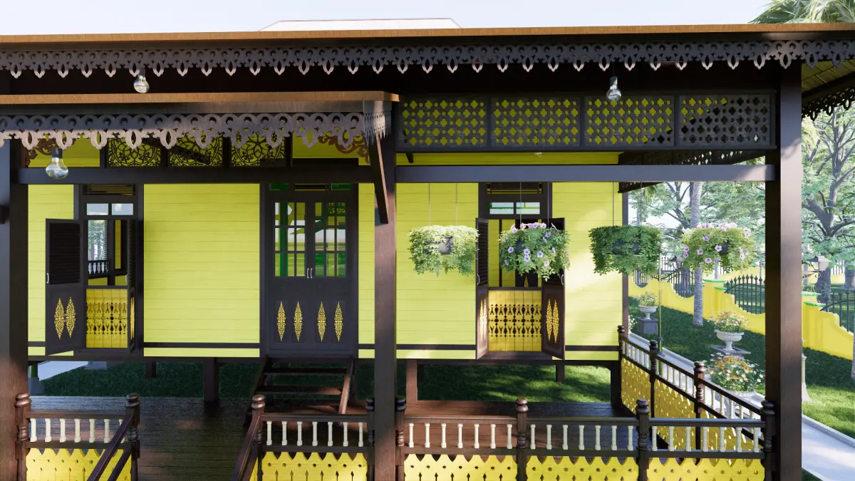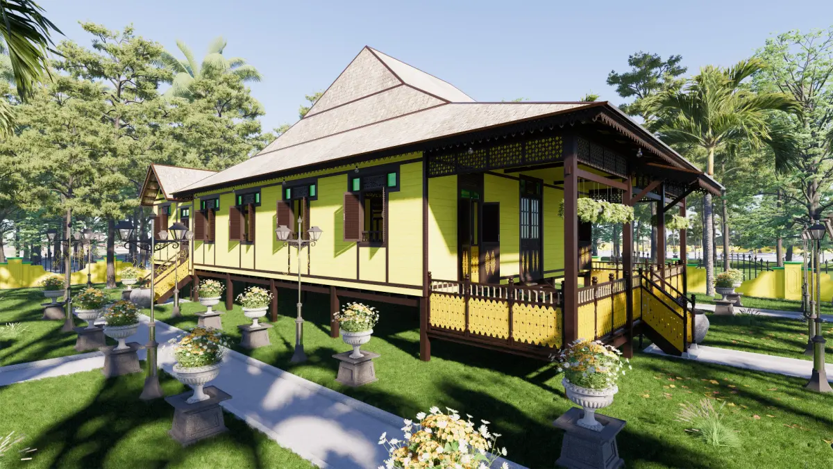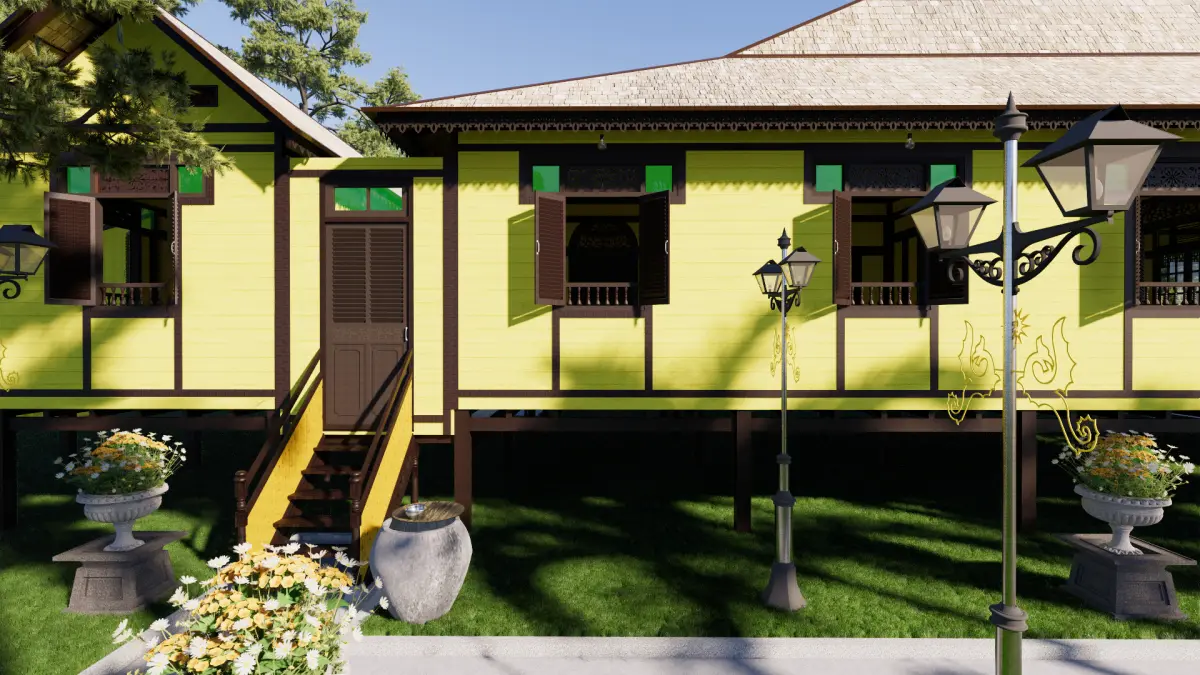 The traditional Sambas Limas house is a house for the Sambas Malay community that still exists today. The shape of the house still maintains its original form, both in terms of its materials, namely Kalimantan ironwood and various ornaments on the doors & windows, roof eaves, ventilation, and others. This house is yellow, indicating that the owner of the house is an important person/dignitary or a relative of the Sambas Sultanate. In this design, the Limas house consists of one floor on stilts to adjust to the surrounding environment. The traditional Sambas Limas house was designed using the Sketchup application and rendered using Enscape to produce a more realistic appearance. There are 6 layers of structural elements in the application so that it makes modeling easier and more detailed and neater. The textures and materials used are included in the SketchUp application. with that, everything shown in the preview image is included in the sketchup application which contains everything. This 3D model sketch can be converted into various applications such as fbx, obj, 3ds, blend, and others. This 3D model can be used for students, researchers, architects, civil construction, humanists and many others.For further questions, you can do this via the shop or Email : 3rd.summer.studio@gmail.com ; Whatsapp : +6289692630617 ; Instagram : 3rd_summerstudio