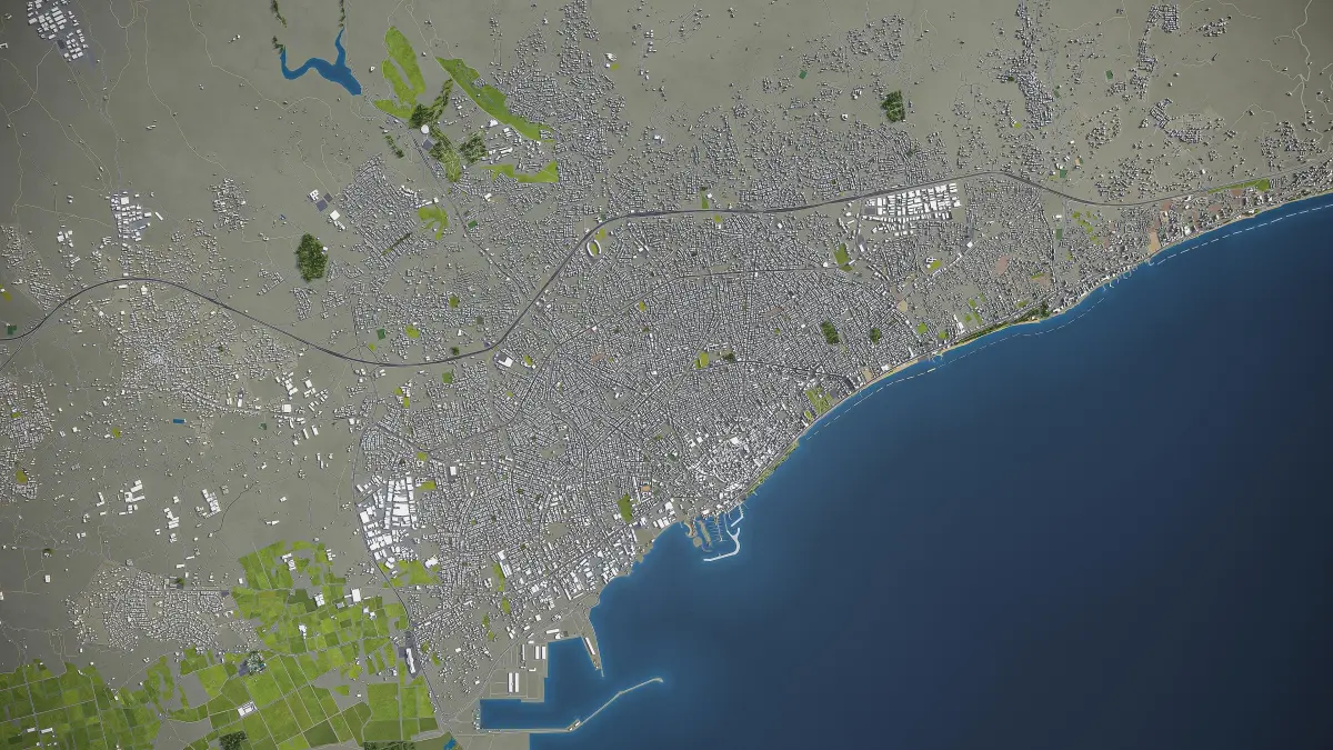 - Road and railway splines — for traffic animation, etc.