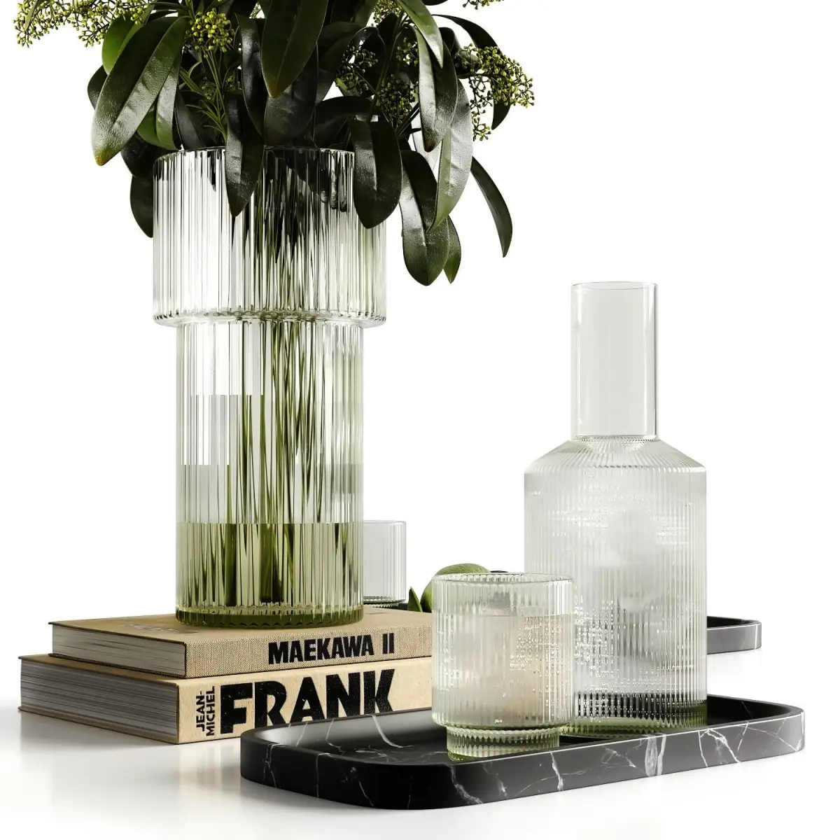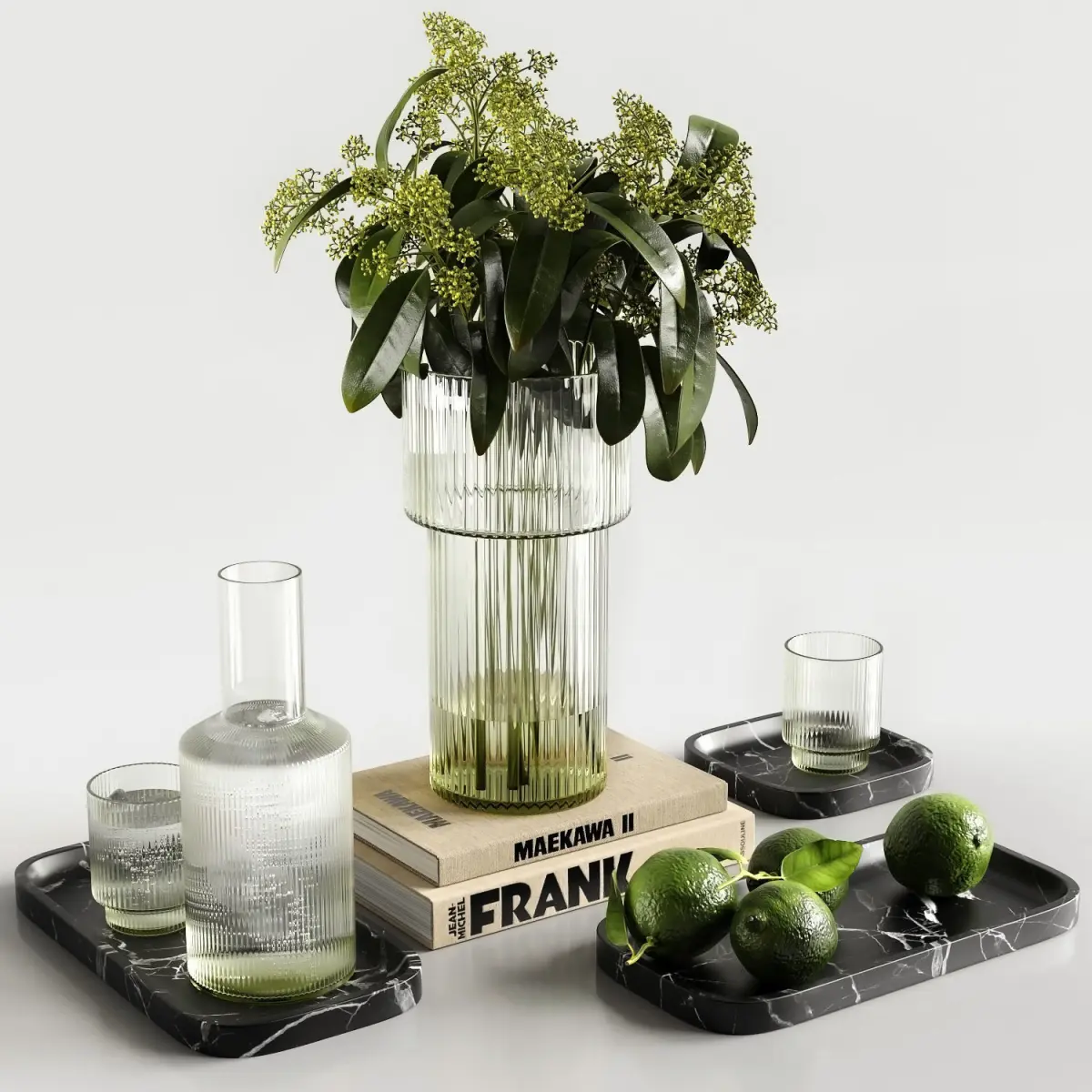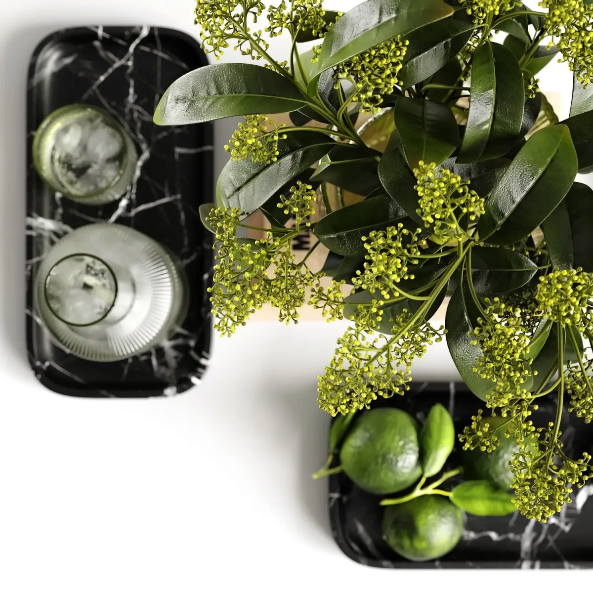 Decorative set with pistachio branches and limes