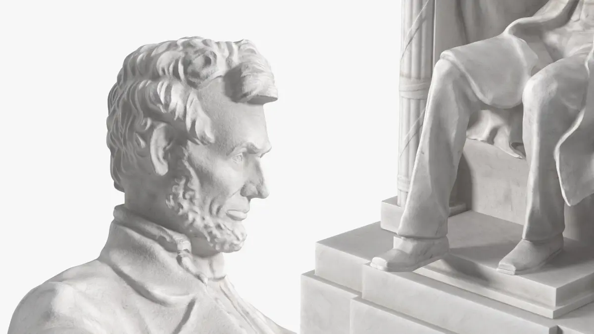 Lincoln Memorial Monument Figure with Pedestal is a three-dimensional model of famous marble statue depicting a seated Abraham Lincoln, located in the Lincoln Memorial in Washington, D.C.