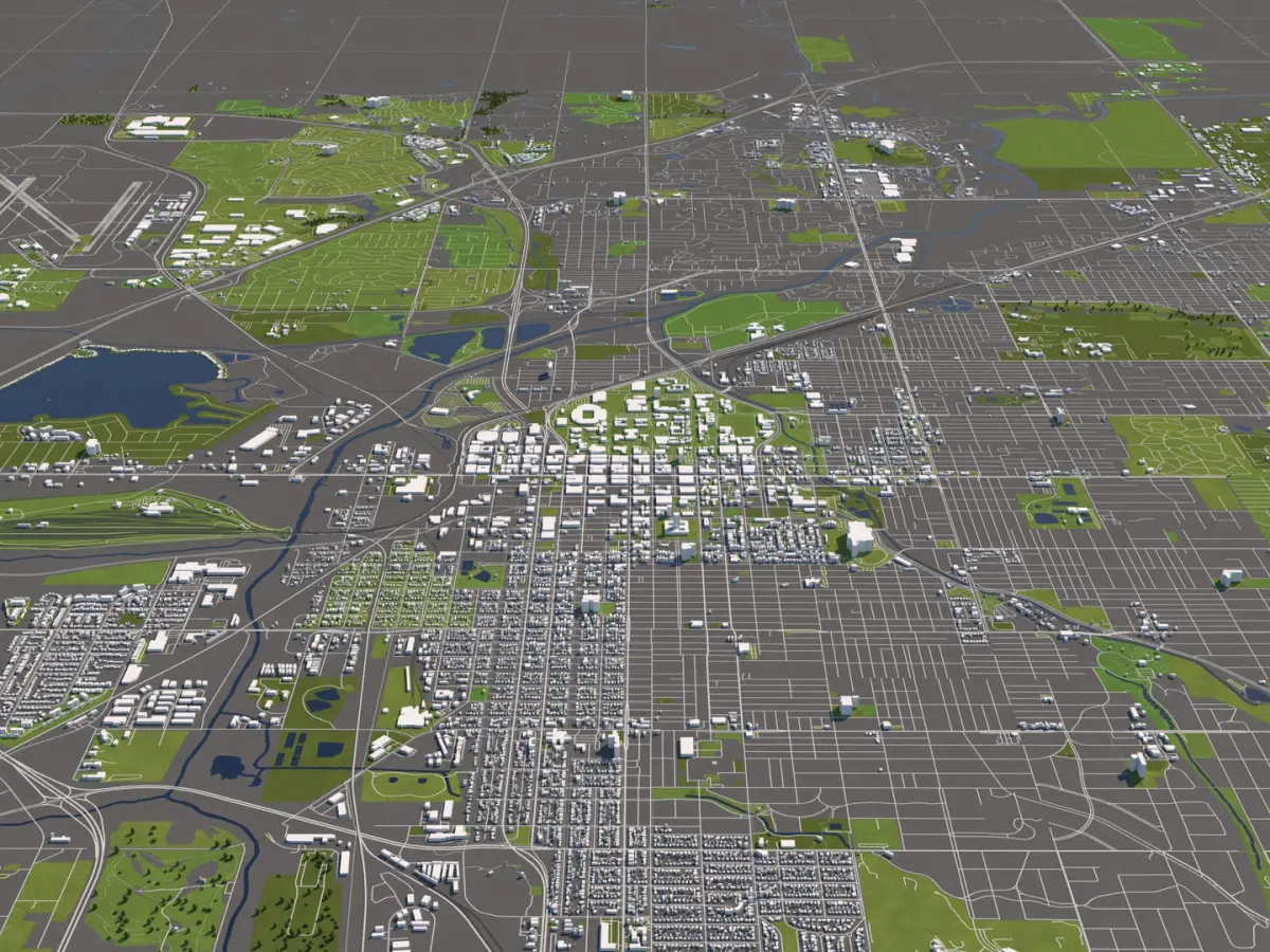 A DETAILED 3D MODEL CITY MAP OF LINCOLN, NEBRASKA, USA: