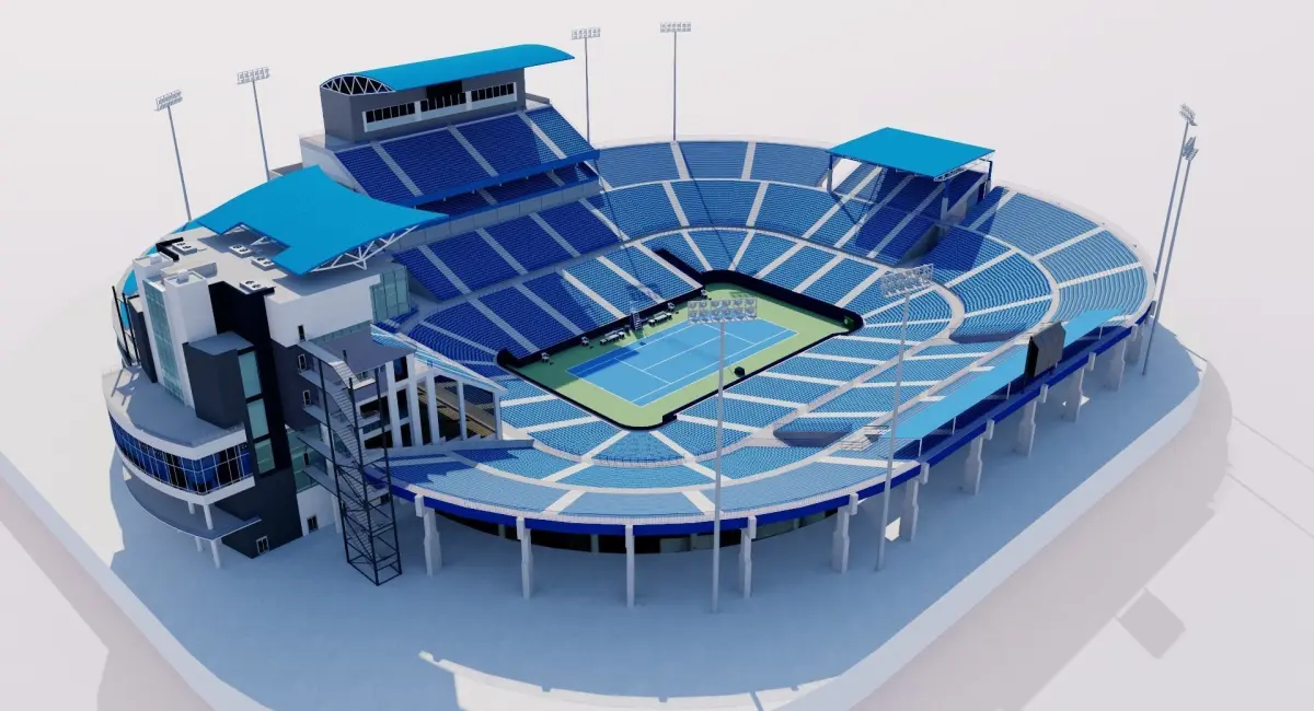Starter model. Approximate dimensions. Bleachers and seats in 2D texture.