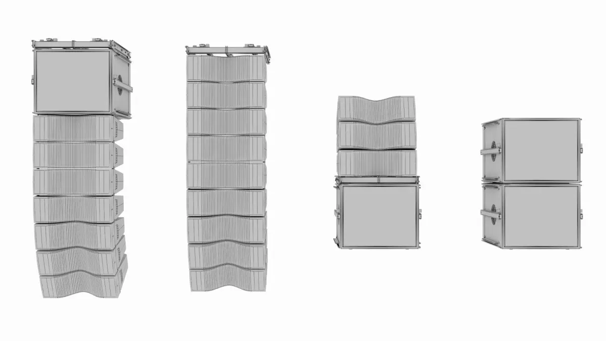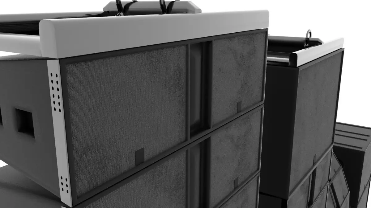 Low poly line array sound system. Professional line array sound system model used in concerts, festivals and other organizations. You can multiply the number of sound systems in the file. There are coating and material arrangements in corona render for the model.
