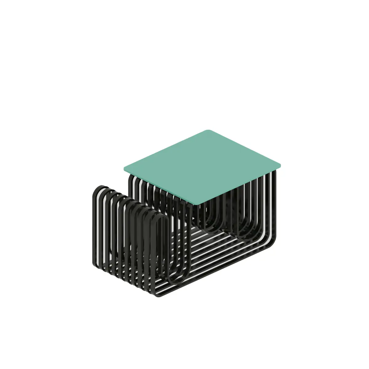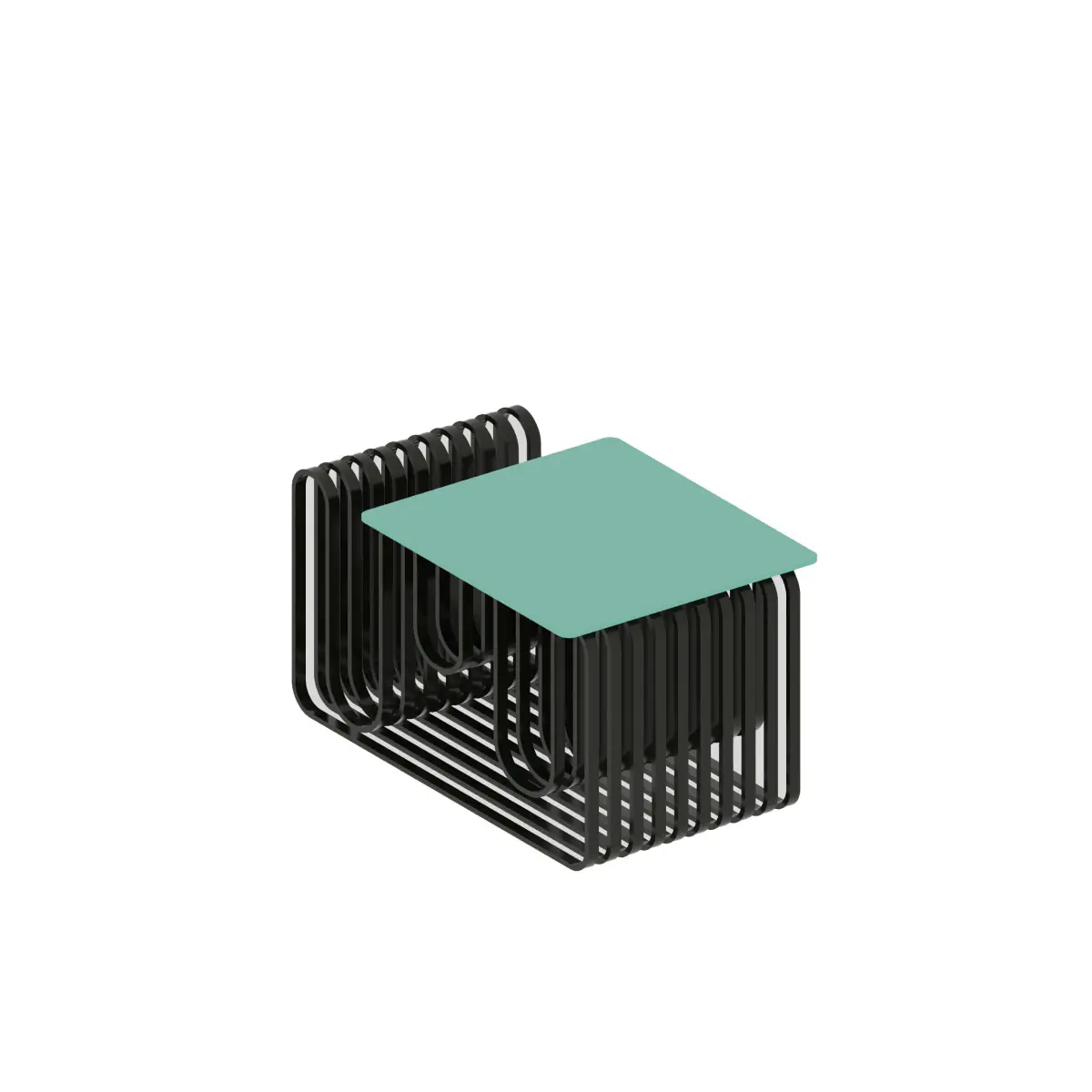 This modern metal side table stands out with its minimalist and industrial design approach. Featuring black metal tubes and a pastel green square tabletop, it is a stylish and functional piece of furniture. This model is ideal for living rooms, libraries, and modern office designs.