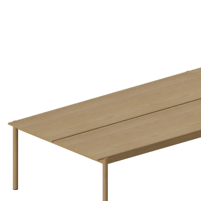 The Linear System Table is a simple yet refined table with subtle details and references to the Scandinavian design heritage. Its legs are cut into half-circles and joined with the table for a light expression while the slender overhang at both ends of the table makes for a refined expression. The Linear System Table is available as a freestanding table to be used on its own, as predesigned configurations or as Middle and End Modules that can be configured to the exact needs of your space.