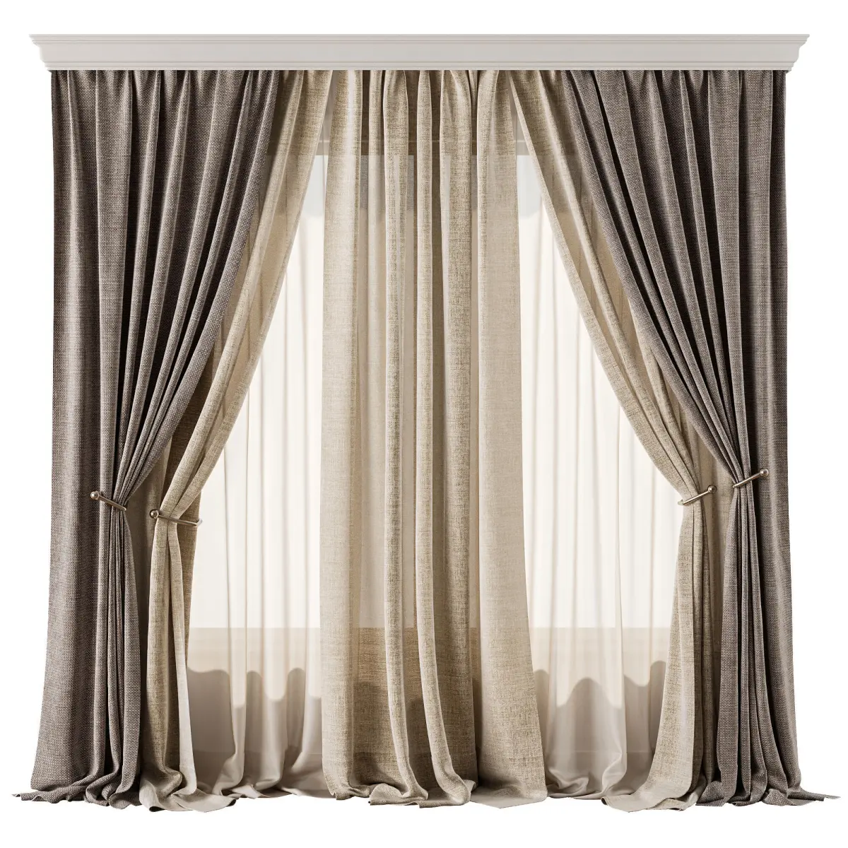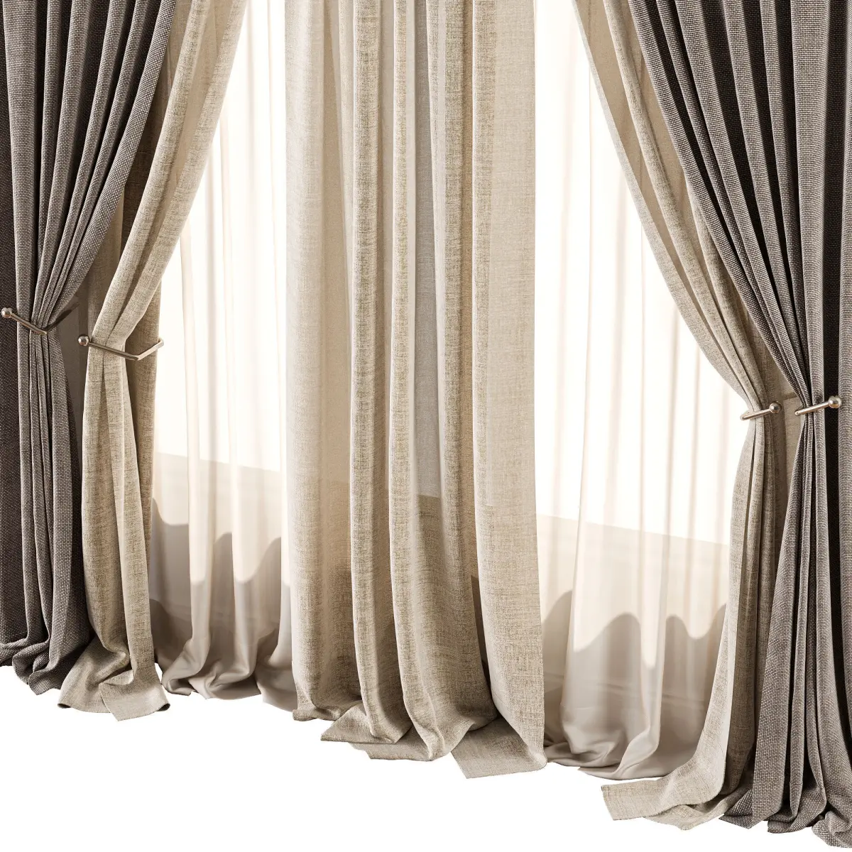 Key Features: Dual-Layer Design – Heavy linen drapes paired with a sheer inner layer for a balanced and elegant look. Realistic Fabric Simulation – Expertly modeled folds, weight, and drape for ultra-realistic rendering. Gradient Linen Texture – Soft transition in tones for added depth and luxury. Sheer Fabric – Enhances natural light while maintaining a sophisticated aesthetic. Perfect Draping & Styling – Tied-back sides with metallic holdbacks for a refined touch. Render-Optimized – Designed for high-quality results in Corona 9 and V-Ray 6.