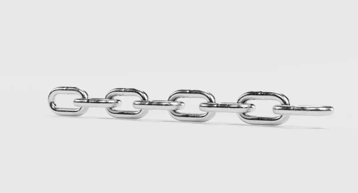 A realistic 3D model of a steel link chain designed for close-up renders and physically believable scenes. The chain features evenly shaped, welded links with a polished steel surface that reflects light naturally while retaining subtle surface wear. Fine scratches add material authenticity, making it suitable for both clean industrial visuals and realistic everyday props. Thanks to its regular geometry and solid appearance, this proof-style chain works well across product visualization, environment details, and technical or industrial scenes.