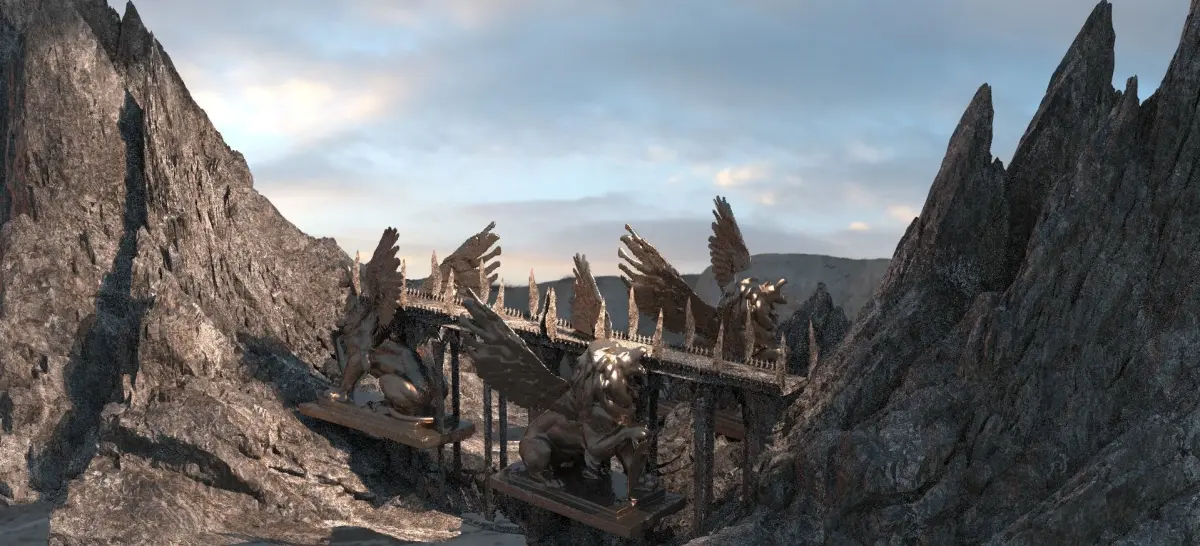 Lion Ancient Temple City Bridge 1 3D! Tiled textures provided !