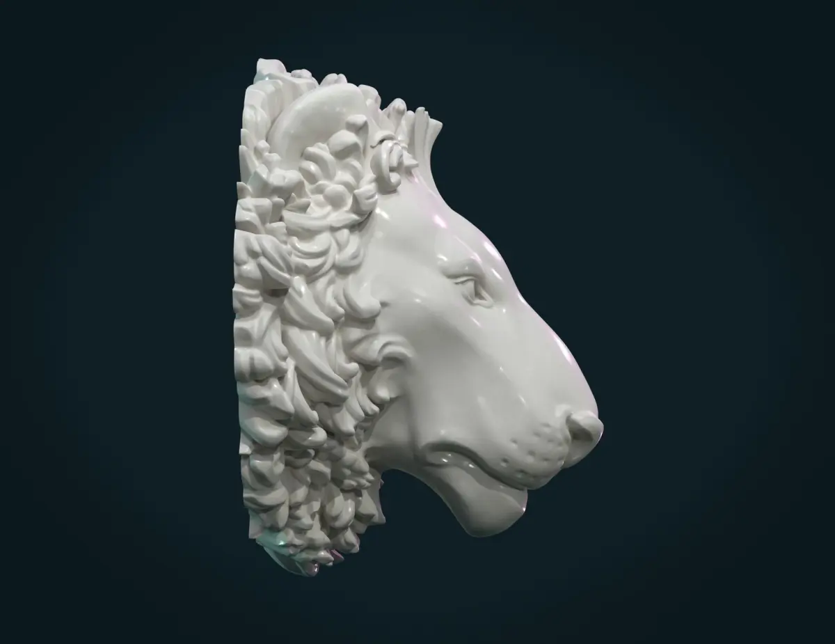 1) Lion_Head_Solid. (.blend, .stl, .obj, .fbx) 870658 triangular faces + round base 38776 faces.2) Lion_Head_Hollow. (.blend, .stl, .obj, .fbx)