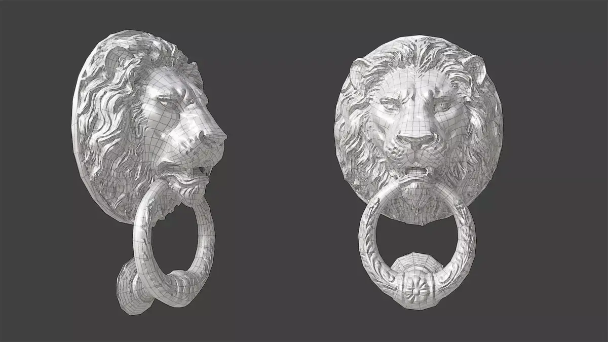 Home Catalog Lion Head Door Knocker High Poly Low Poly PBR Low-poly 3D model