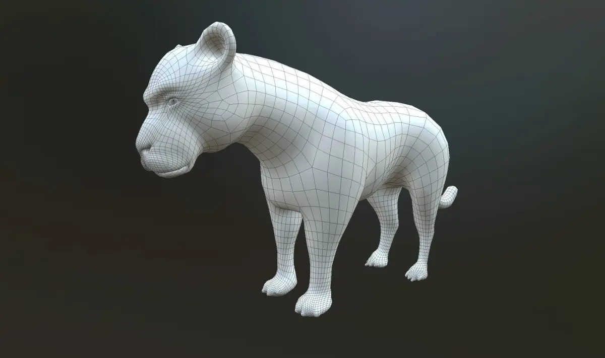 3d model of a lion with clean quad topology. This model is good for rigging and animation. The texture is embedded in the blend file with a dimension of 2048x2048.